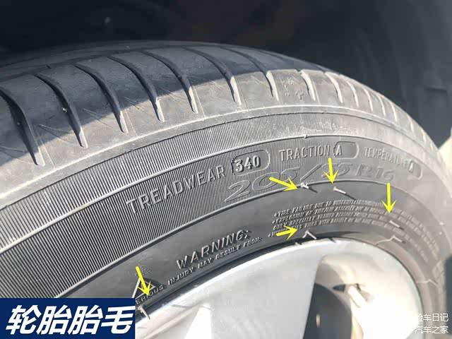 除此之外,我们还可以看下轮胎表面有没有胎毛!后期翻新的轮胎,因为和原厂的工艺是完全不同的,所以做不出来胎毛!所以一个新轮胎没有胎毛,一定要怀疑有没有被翻新过!