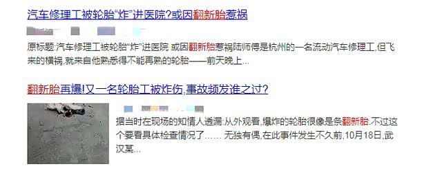网上有很多关于翻新胎引发的一些悲剧,工人充气时被翻新胎"炸伤",高速行驶时爆胎等等!