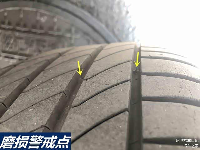这是原厂轮胎设置的一个磨损警戒点,如果胎纹深度达到这个凸起的点,说明这个轮胎已经磨损到极限,需要更换!