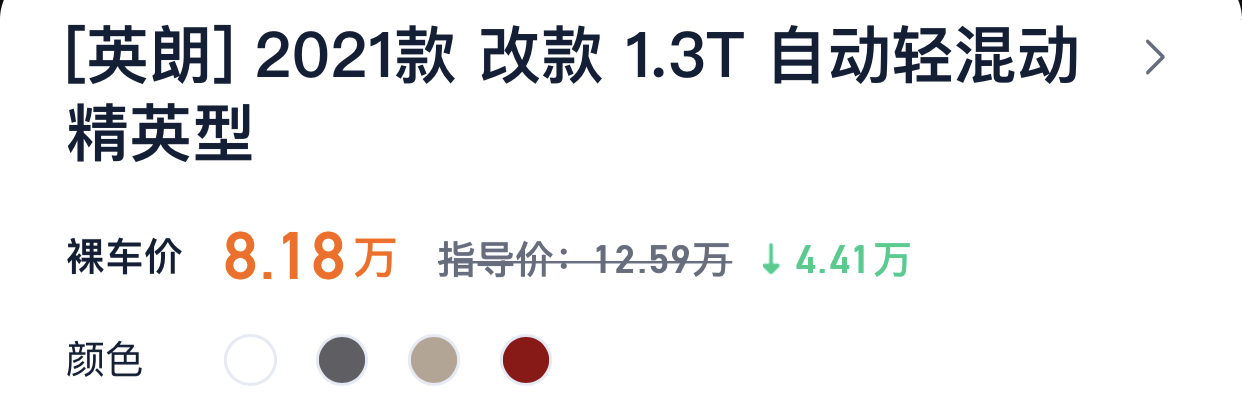 别克英朗2021款 改款 1.3T 自动轻混动精英型的指导价为12.59万,优惠之后裸车价在8.18万左右。