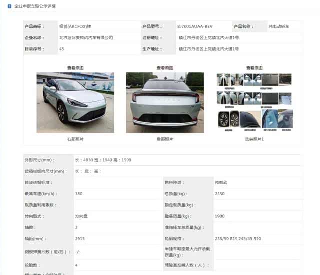 10月份,北汽高端新能源品牌ARCFOX旗下首款车型——αT正式上市,而ARCFOX αS则是该品牌旗下的全新轿车,近日,我们从工信部官网获取得到一组这款车的申报图。根据目前的信息来看,该车将有两个动力版本以及三个续航里程版本,其NEDC续航里程分别达到了525km、603km以及708km。新车延续了SUV的设计语言,且整体质感和科技感仍然非常强,有望在2021年正式推出。
