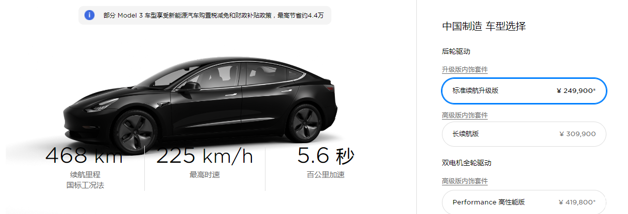 根据分析,让特斯拉Model 3能够在11月实现销售突破2万的原因,一方面是由于10月初车型降价的作用。根据公开的数据显示,10月1日,特斯拉方面宣布Model 3标准版续航售价27.15万元下调至24.99万元,降幅超过了2万,同时也提升续航里程到468公里。"降价并提升续航"的动作,降低了消费者的购买门槛,也增强了市场购买信心。