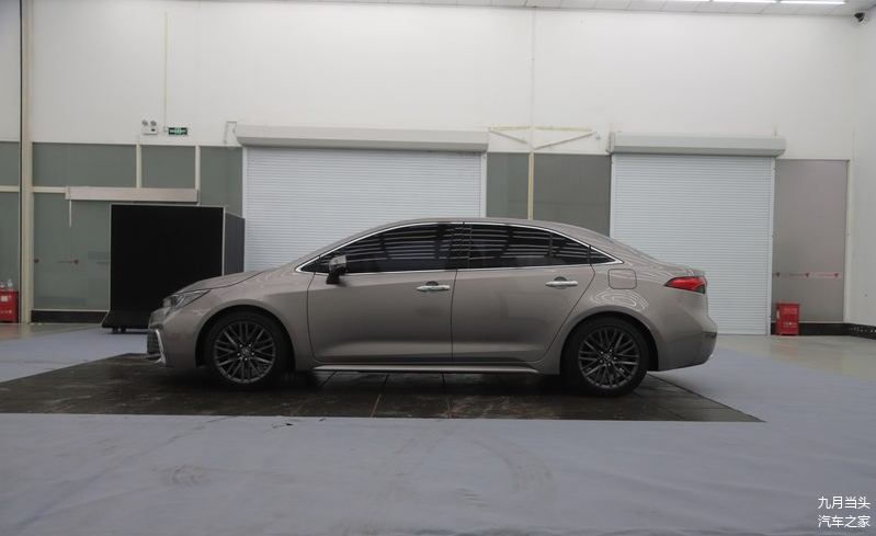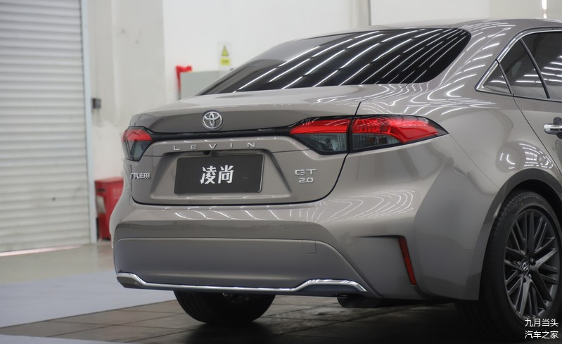 在新车侧面上,新车和雷凌相比有着更“俏美”的侧颜值,因为它比雷凌更显得修长。车身的线条走势,从前轮毂上方开始倾斜着往上收缩延伸,刚好到了后车门结束,这种俯冲式风格设计在视觉美学上,使得车身更加完美的展现出一种修长美。车门下方采用的低沉式下凹设计,起到了降低车辆重心的视觉离地感。
