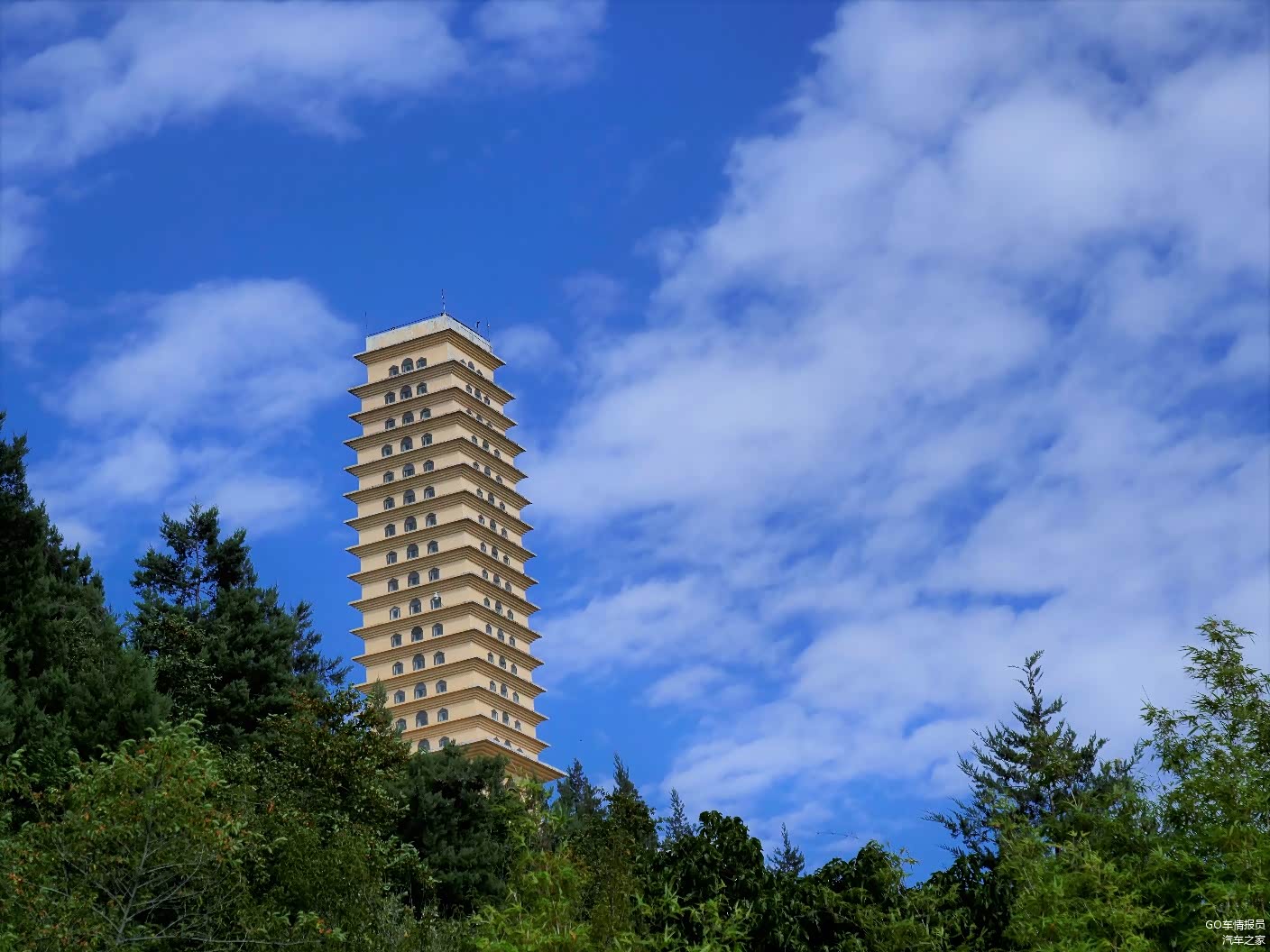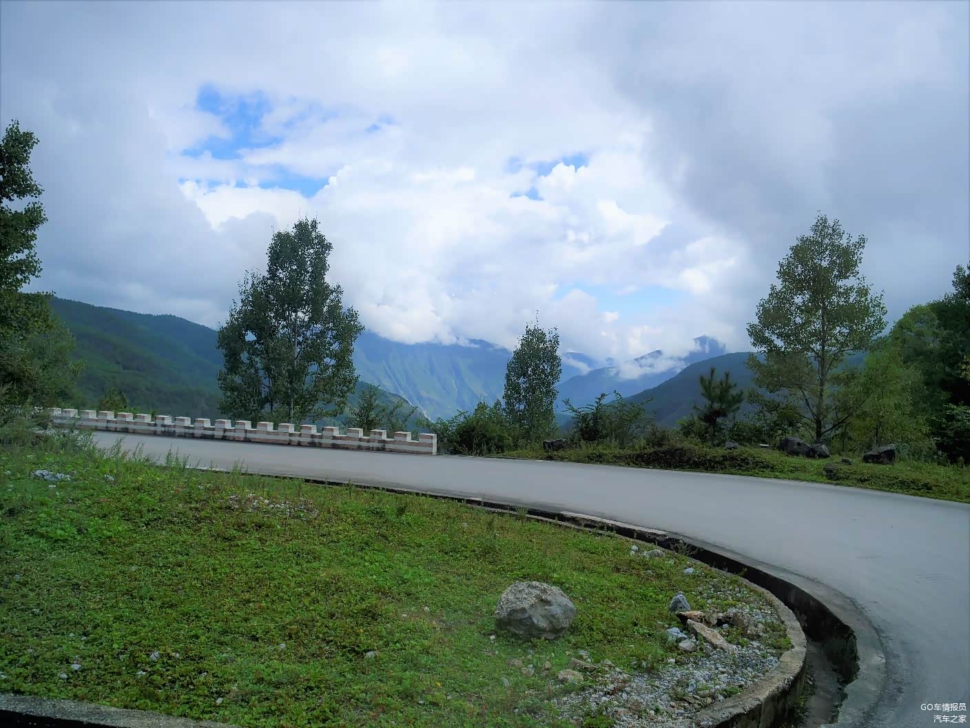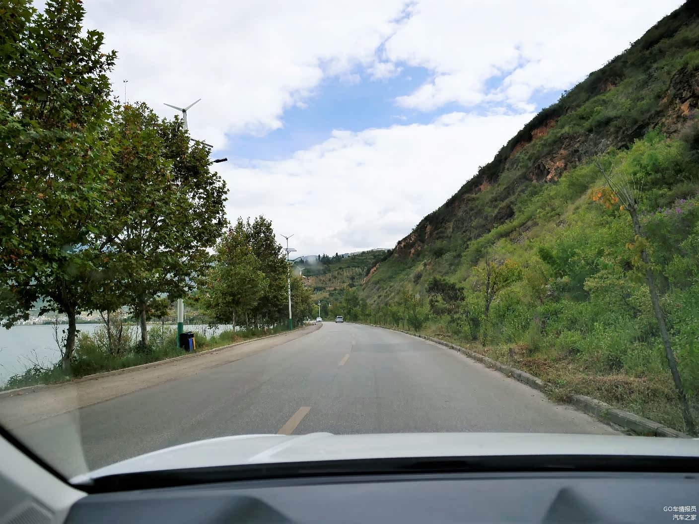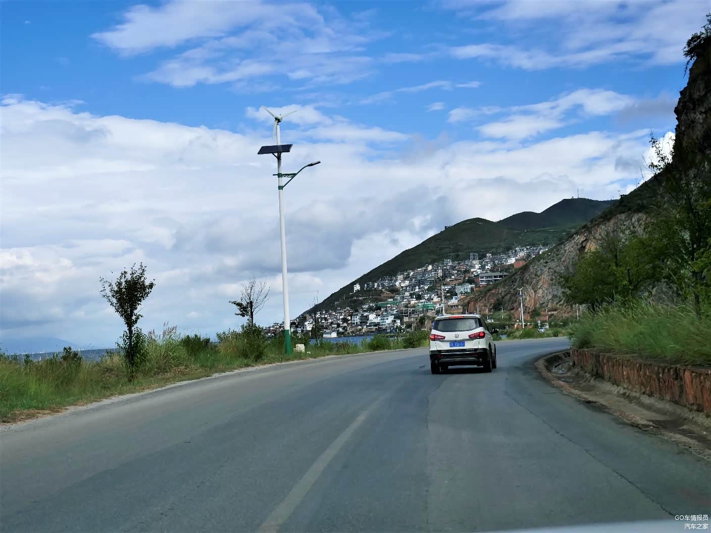 在服务区吃饱喝足后接着一路前行,天空中的白云逐渐的多起来,偶尔还来一阵太阳雨。