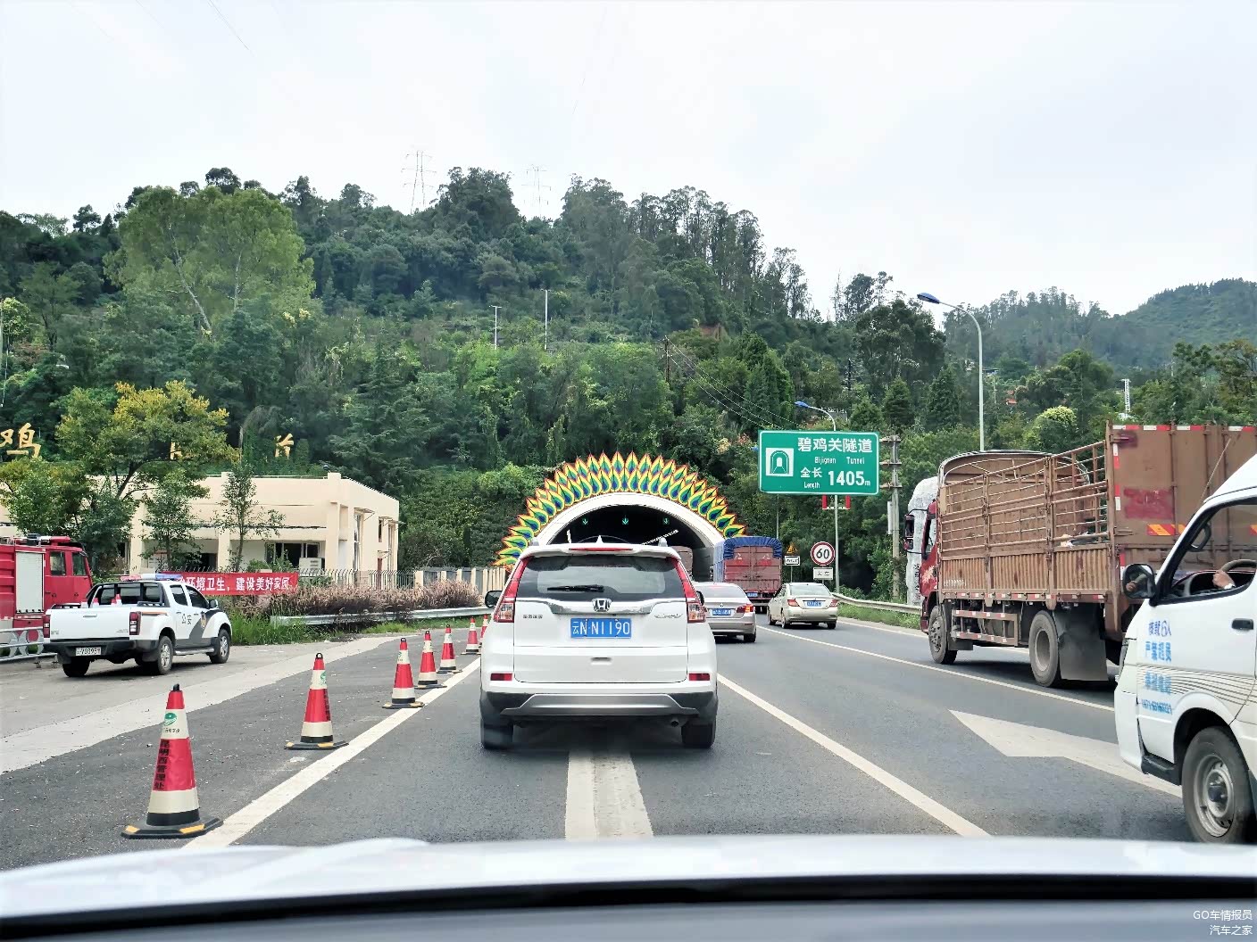 过了碧鸡关隧道之后,就进入G56杭瑞高速的收费站,国庆长假期间高速免收通行费,但是车流量也大了。