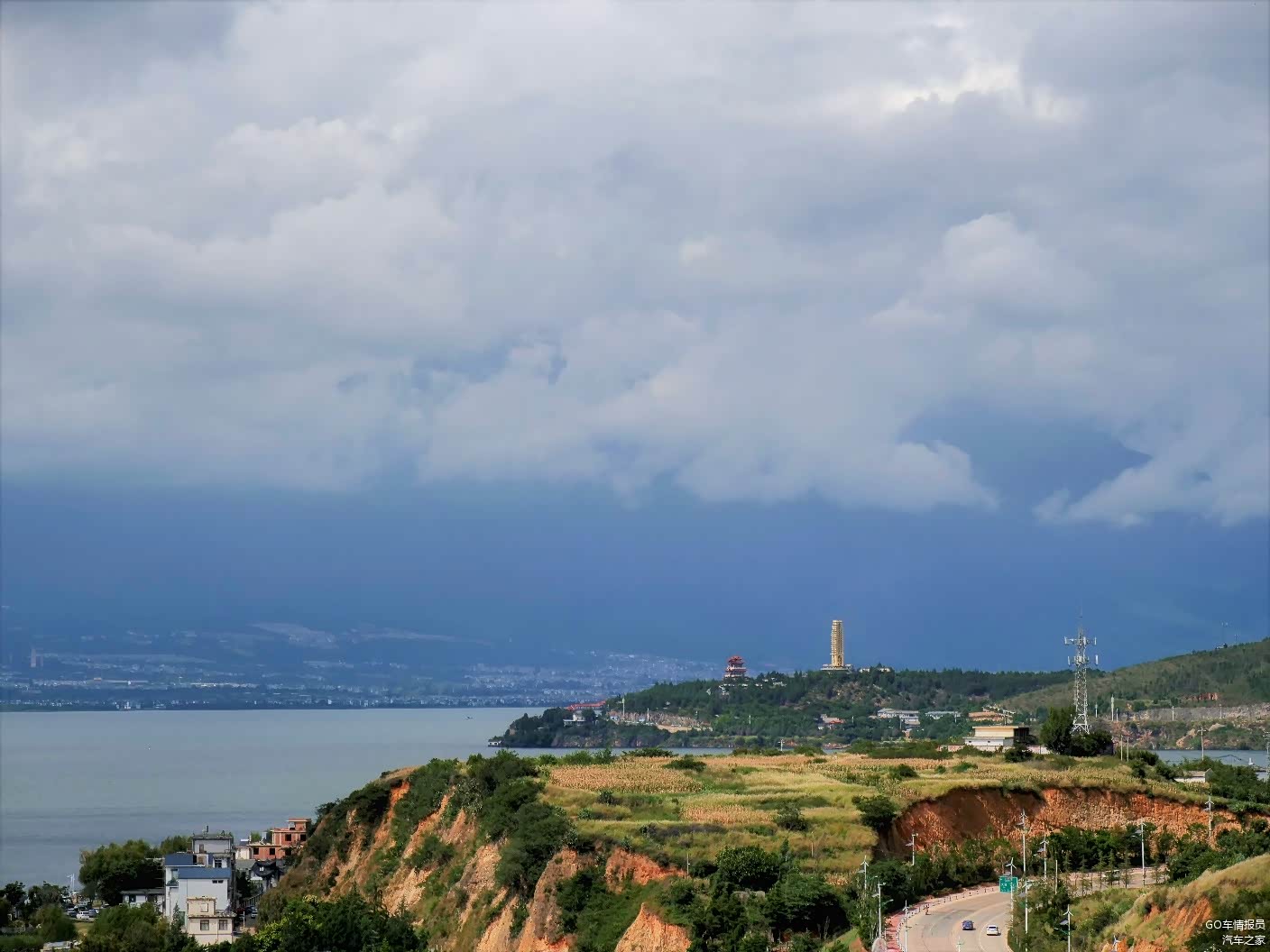 过了九顶山隧道,就到大理了,从G5611大丽高速上下来,通往挖色镇的匝道上一眼就能够望见苍山洱海,视野非常的开阔。