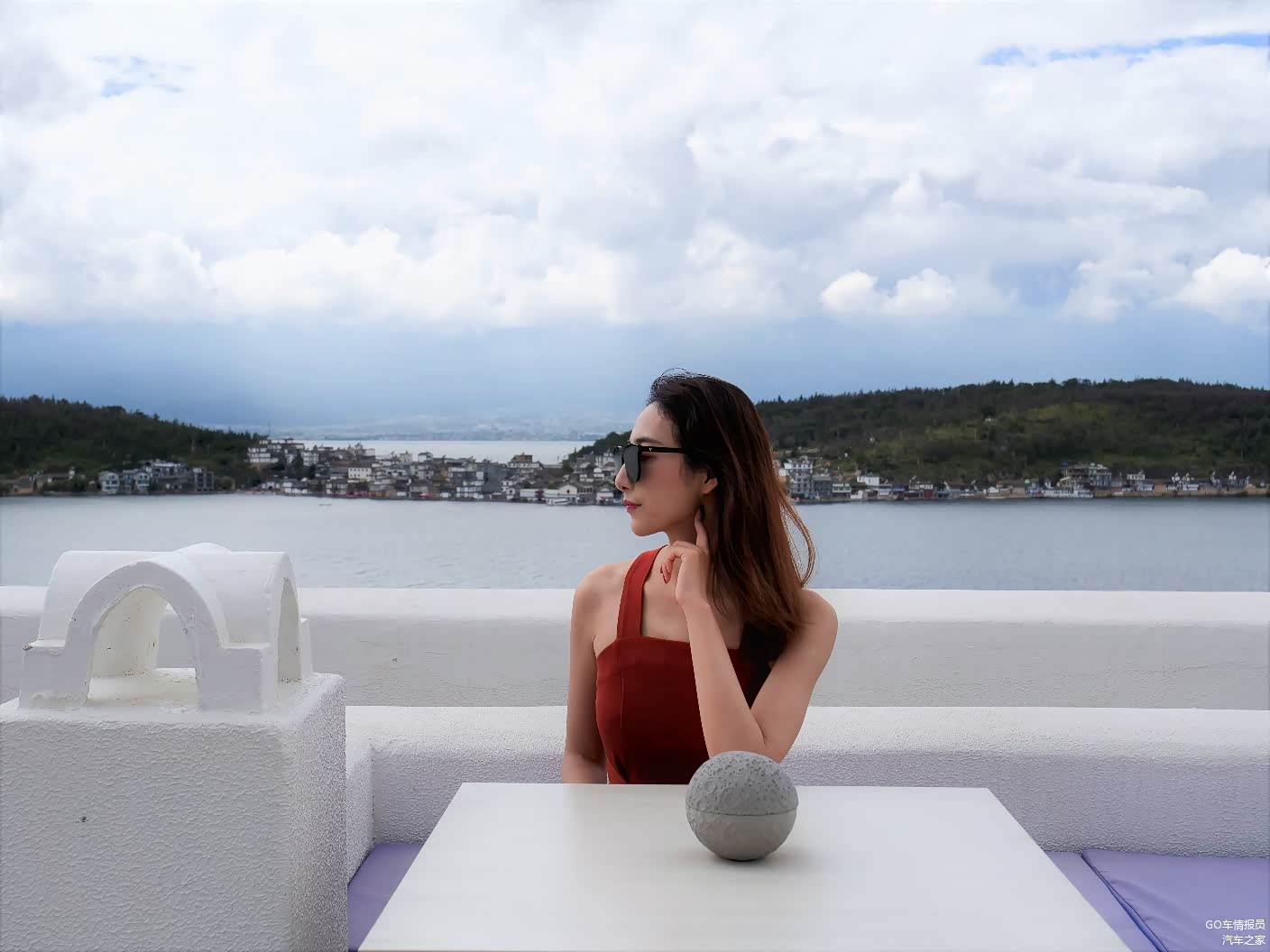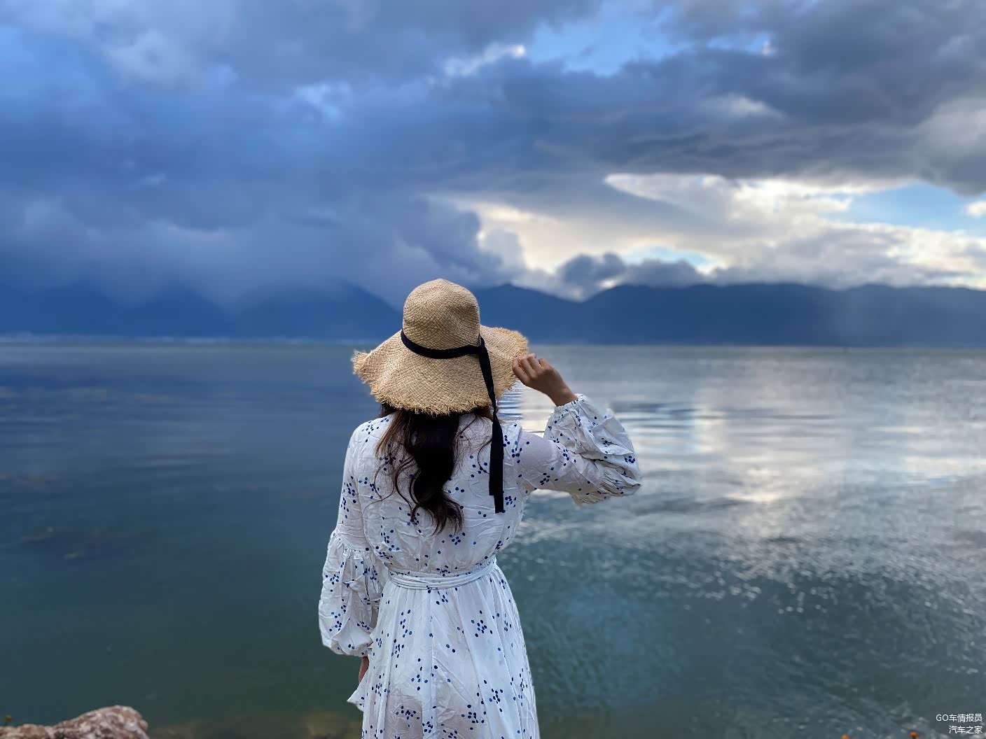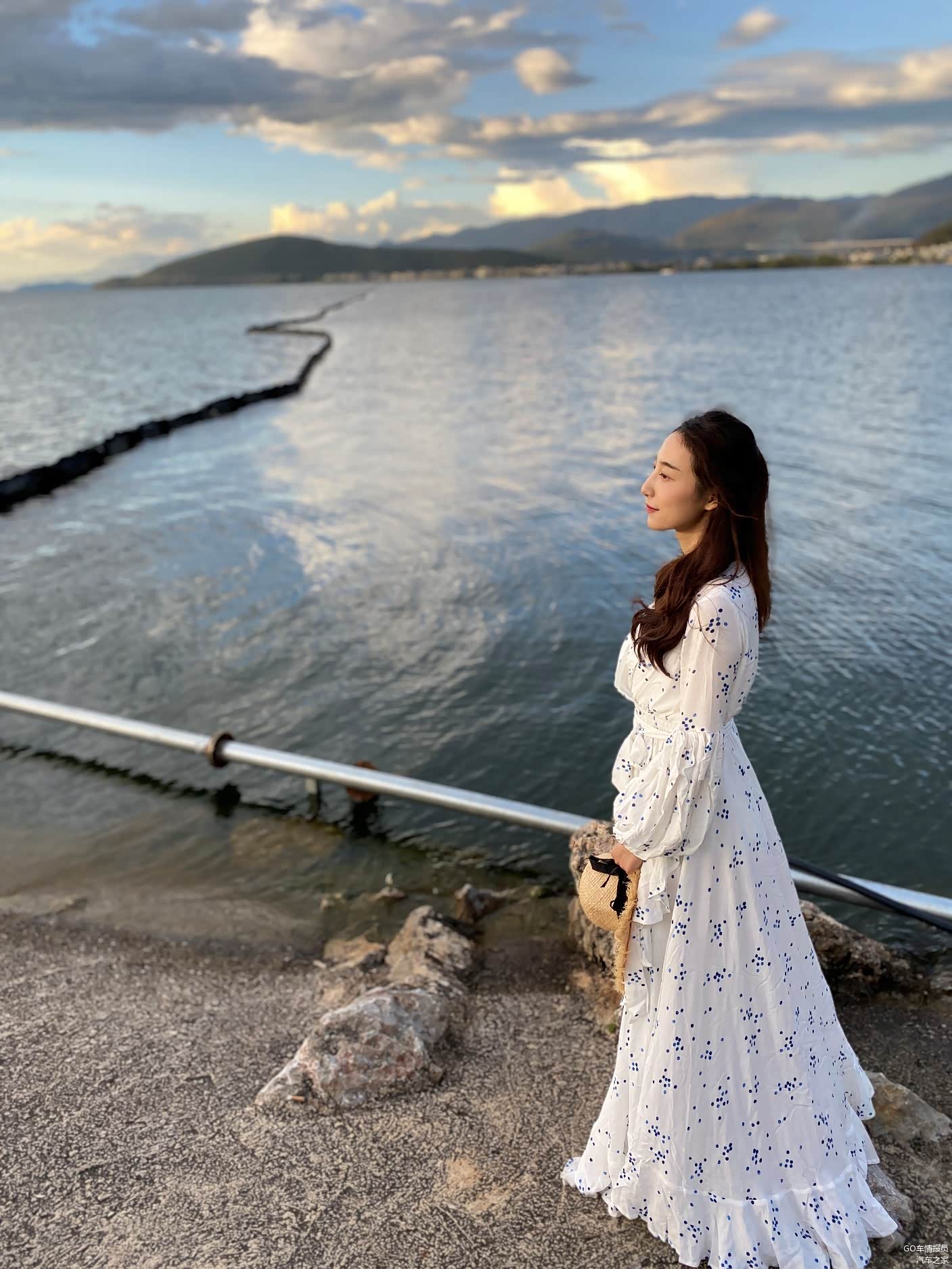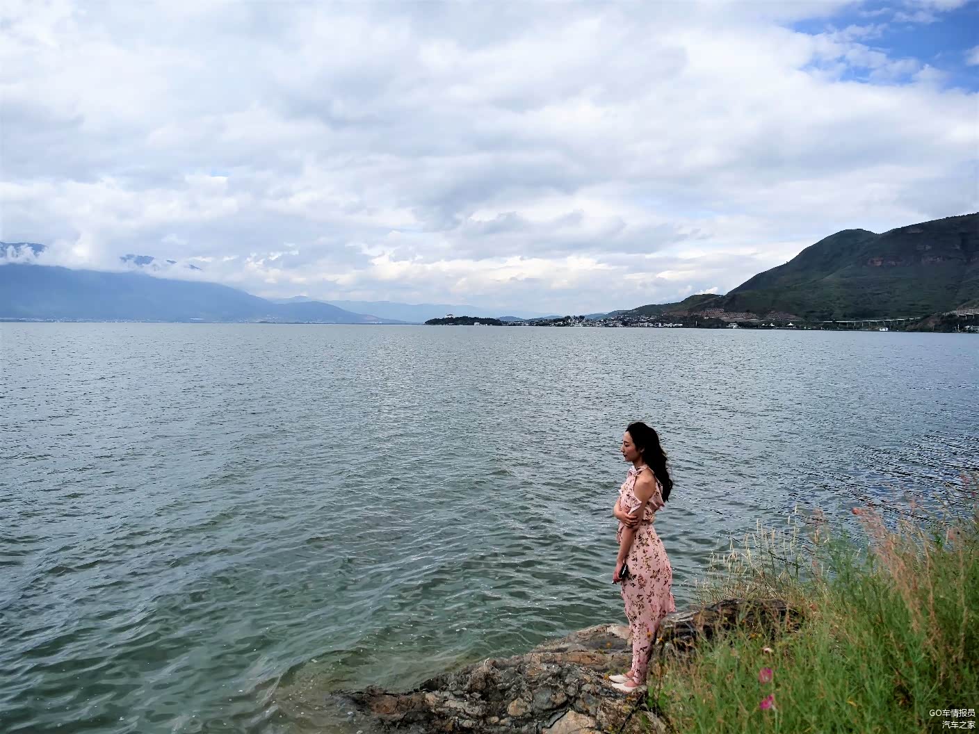 在民宿放好行李,程老师换了长裙,迫不及待的到洱海边开始自己的打卡拍照旅程。低垂的云和平静的洱海水面,像极了一幅丹青水墨。