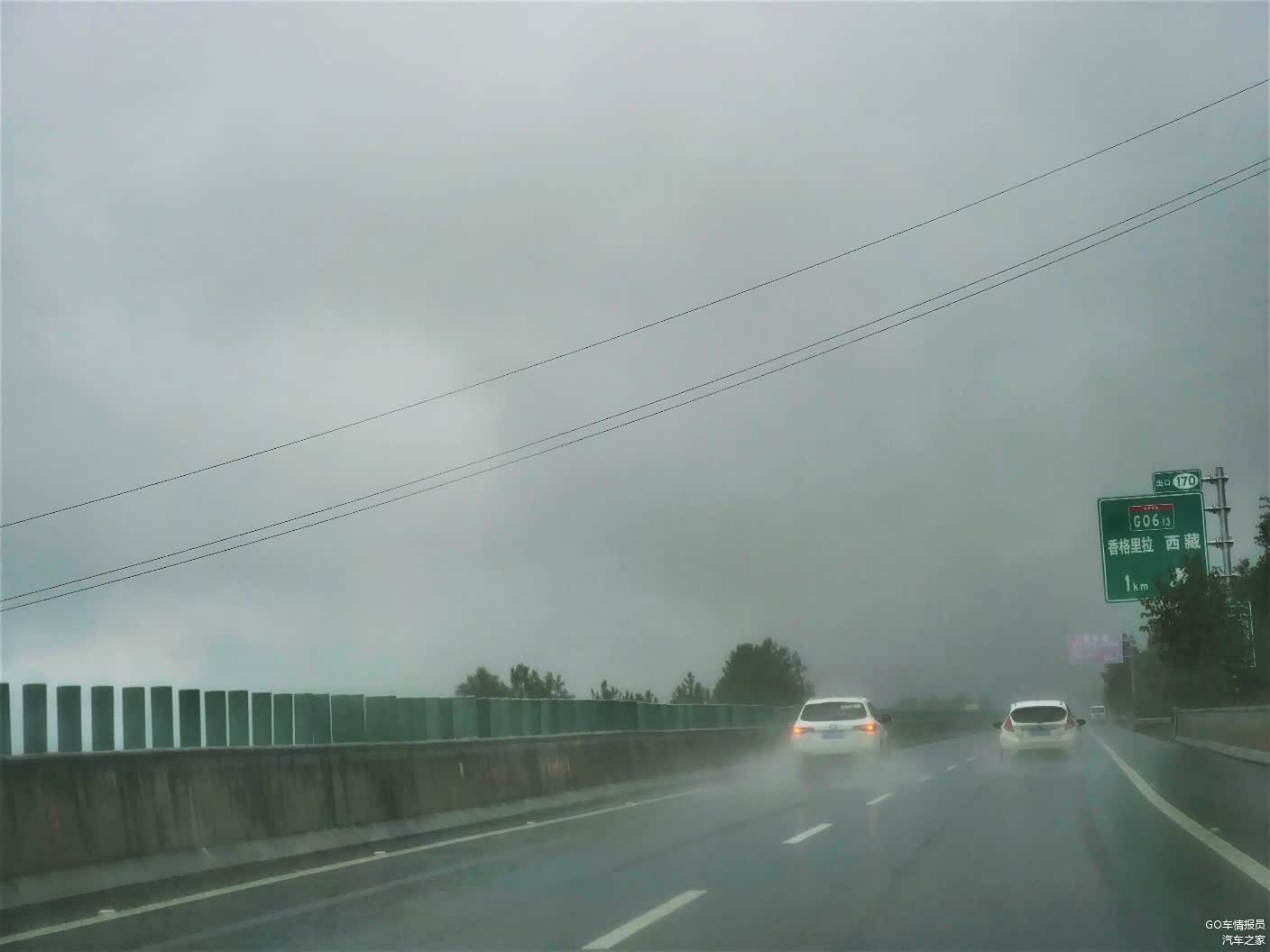 果然没开多久,开始大雨滂沱起来,视线变的越来越差,这个时候打开雾灯,保持车距就非常的关键,车速也慢慢的放缓,不过过了拉市海服务区之后,靠近丽江天气又慢慢的放晴了。