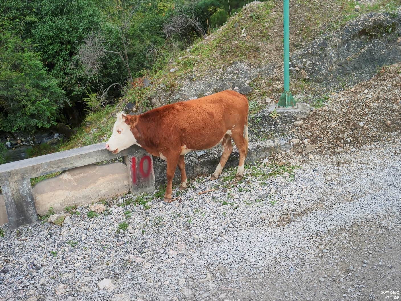 我们只买了从景区到牦牛坪的索道套票,一路上景区的班车沿着盘山公路弯弯绕绕走了快半个小时,海拔也慢慢的升高,路边还不时有牛穿行。