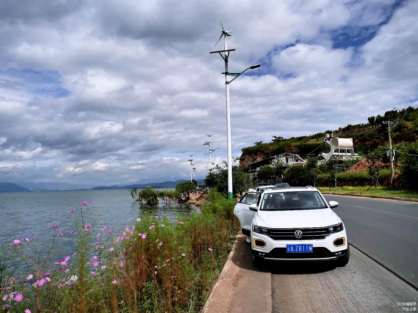 环海东路基本上都在洱海边,视野非常的开阔,不时能够看到路边有停车下来拍照的小姐姐们。程老师在岸边站了一会儿就觉得风大,不想在当网红小姐姐了。