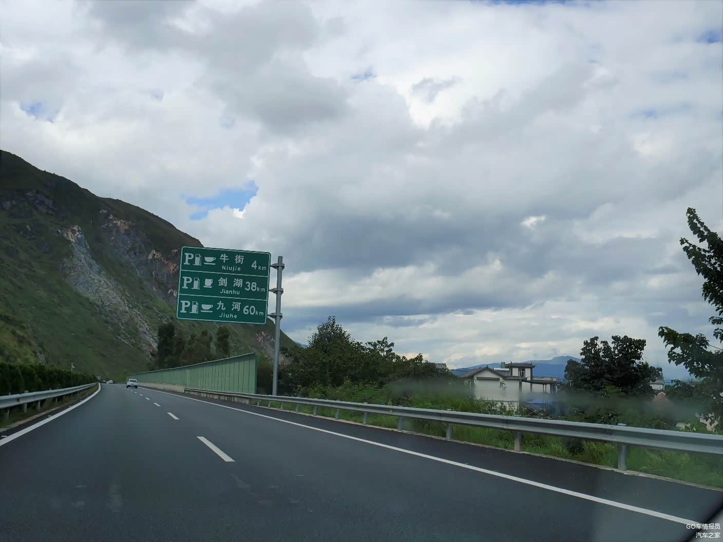 从理想邦出来,沿着环海东路往北走,不远就可以从海东立交上G5611大丽高速了,一路上路况非常的赞,比318国道强很多,而且路上并没有太多的隧道。不过临近九河服务区,明显感觉到靠近丽江方向的天空开始转阴。