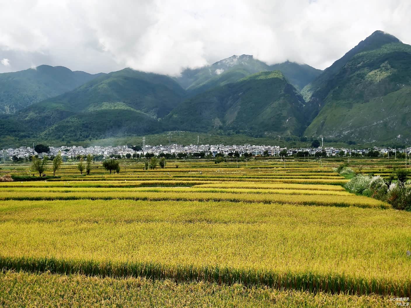 终于到了程老师最爱的网红稻田打卡地,苍山下的金黄色稻田风景还是不错的。但是拍了半天之后,程老师对比了下网红打卡照,发现找错地方了,这里不是喜洲镇的网红稻田。哎!