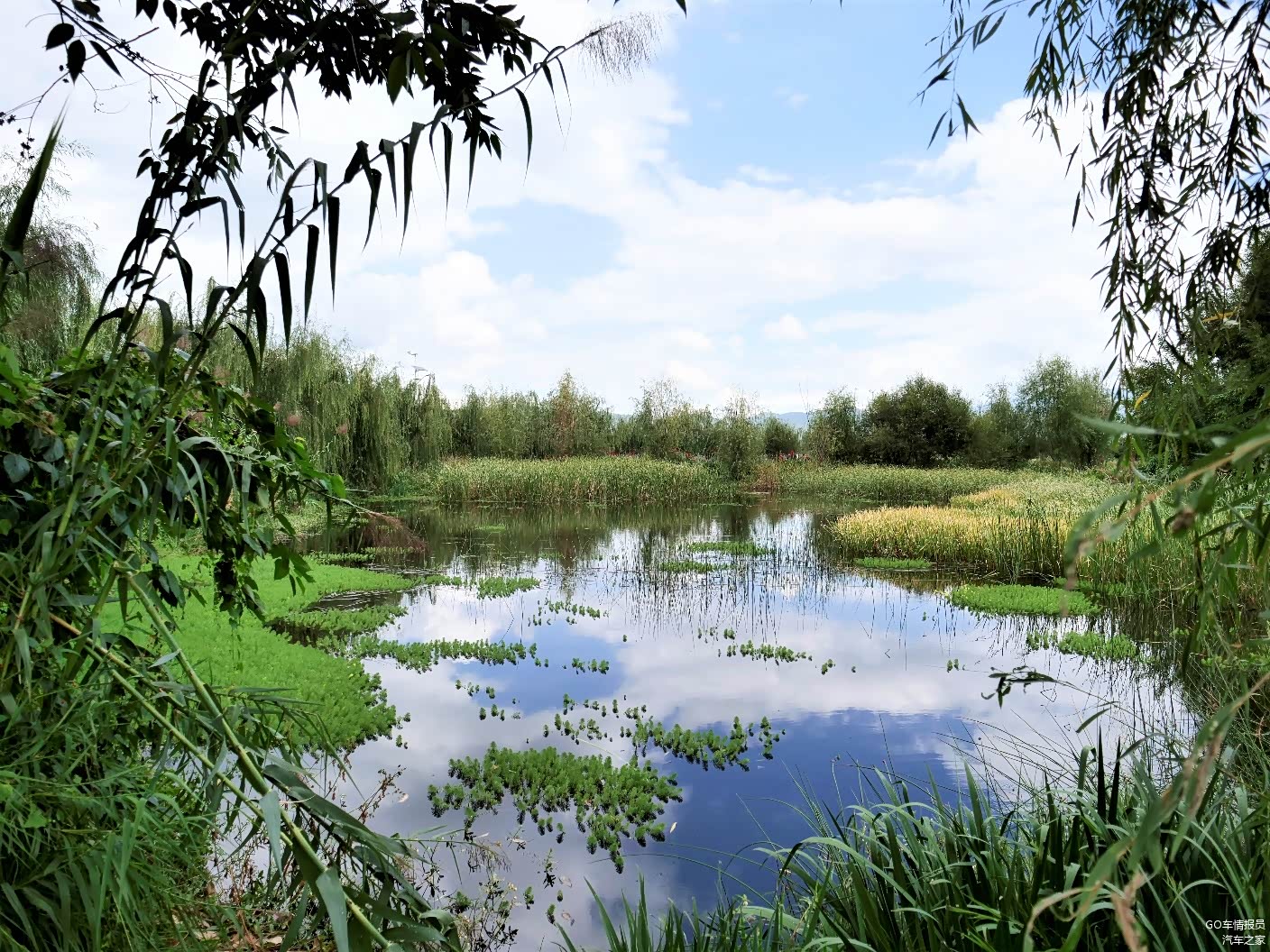 在去喜洲古镇的路上,遇到一片湖边的湿地,有人在钓鱼,平静的水面倒映着蓝天白玉,清幽的很。不过太阳也是很大,程老师怕晒黑了一直喊着要回车里,回车里了之后本想让她开车,她踌躇了半天,最后还是把司机的工作交还给我了。