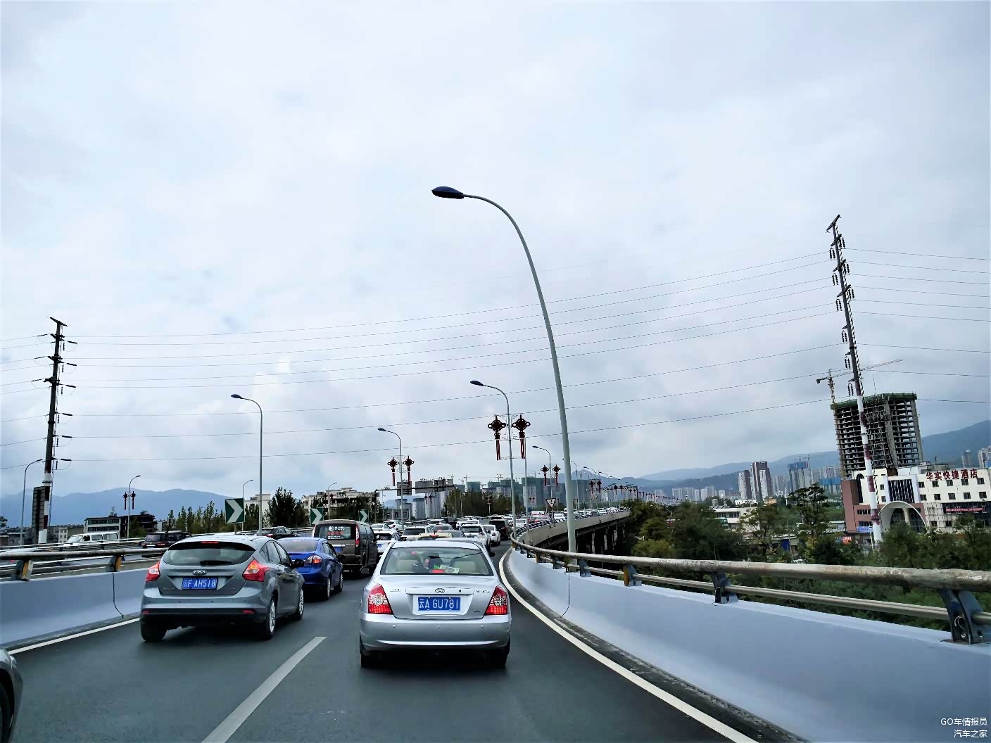 早上的昆明市区交通还是比较堵的,虽然没有太阳,但为了不被晒黑,程老师还是戴上了遮阳帽防晒。