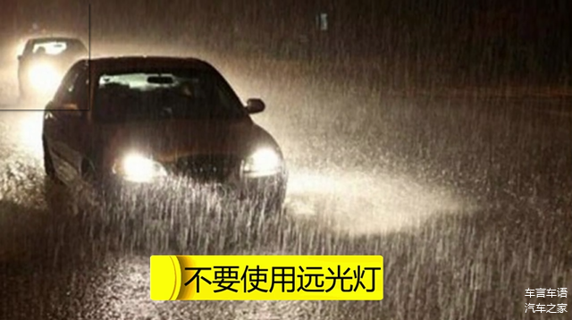 切忌开远光灯,因为雨水的反射,不仅别人看不清,自己也看不清。雨小的时候只开启示宽灯即可,雨比较大时,开启近光灯和前后雾灯,前雾灯能够保证自己的视线,后雾灯的穿透力较强,后车能够明显的看到。若雨非常大,视线很差,能见度小于50米时,需再开启四闪灯,若是在高速上行驶,能见度小于100米时,就要开启四闪灯。开启后需谨慎变道,因为后车无法知道你的变道意图,当视线变好时,及时关掉四闪。若需要路边临时停车,一定要打开四闪灯,以防追尾。