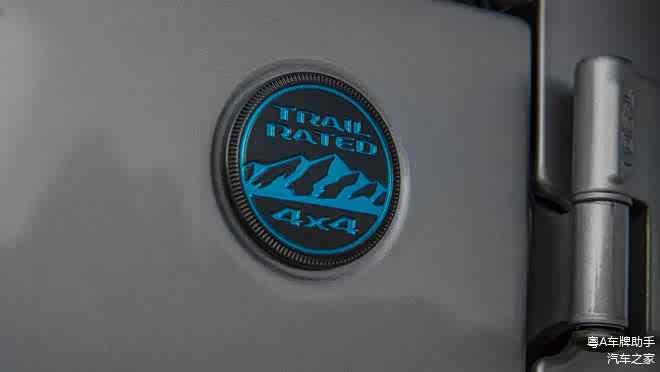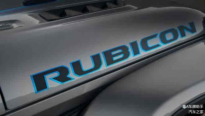 外观方面,新车与普通燃油版牧马人大体相同,仅在细节部分有所区别。比如发动机盖带有蓝色涂装、前保险杠上有全新电光蓝涂装的拖钩,更加具有视觉冲击力。