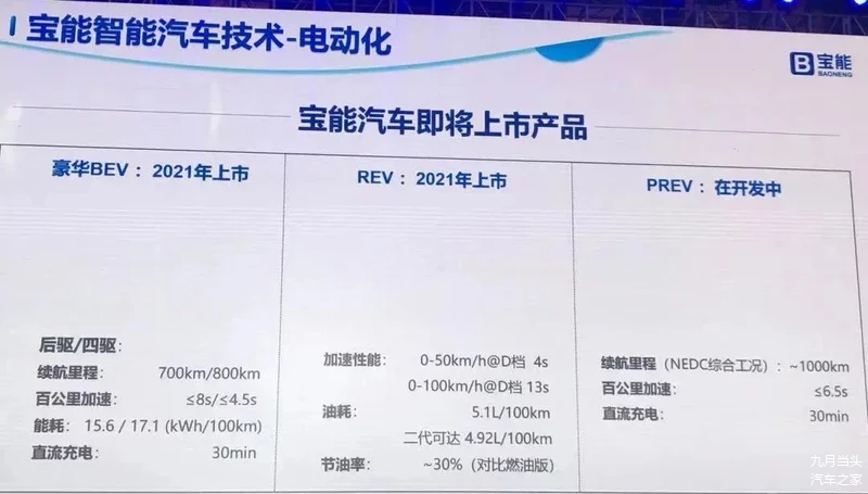 我们从宝能官方获得消息,该公司将在2021年开始会全心投入新能源动力的研发,作为新的方向标。同时会陆续把自己的研发成果-纯电动动力(BEV)、增程式动力(REV)以及插电混合动力(PHEV),运作在多款新车上,为广大消费者送上。