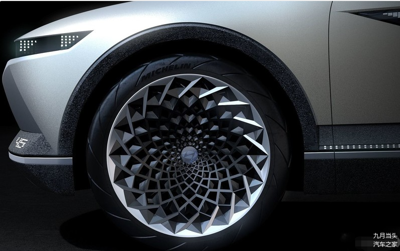 从早前发布的一组概念版的新车外观看,新车在科技感上非常有独特性,车身的线条呈现出一种科幻美。它的几何图形车身,从车身侧前方望去展现在眼前,透露出一种与众不同的风格,一看就知道是辆科技感浓厚的新能源汽车。它的前大灯采用的是矩阵式LED光点灯组,设计风格是采用的“动能立方体灯”。引擎盖上的LOGO标识采用的,类似发光体材质,看起很有辨识度。