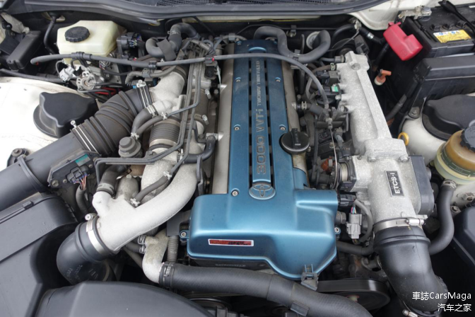 图:这台2JZ-GTE的压缩比并不高,只有8.5,所以它对油品的要求并不算非常苛刻,不想当时的本田NA高性能引擎,不用98就像泄了气的皮球。