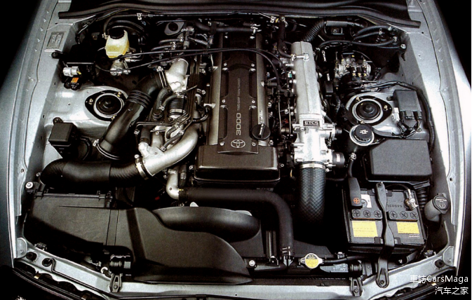 动力系统部分,A80并没有承接A70日规尾期版本使用2.5公升的1JZ-GTE引擎,而是直接找来已经使用在1991推出的Aristo(JZS147)上使用的2JZ-GTE引擎,对于Aristo这款车,相信南方地区的车友们并不觉得陌生,因为当年这个很多GS300的车主会借用这台日规车型的动力系统、也就是2JZ-GTE引擎来改,甚至成为了中港牌的热门车型之一。该涡轮增压引擎采用串列式双涡轮增压布局,第一颗涡轮在1800转时介入工作,以获得更好的扭力输出;3500转时第二颗较大的涡轮进行预增压,4000转后两颗涡轮同时工作获得更大的峰值马力。日规的2JZ-GTE的最大马力必须遵守政府出面制定的所谓“自律协议”上限,也就是280匹,最大扭力431牛米;而出口到美国和欧洲的Supra则不受此限制,加上当地市场的同级别竞争对手更是如狼似虎之下,丰田对引擎进行了一些改进,例如换了相应性更好的涡轮增压器和喷油量更大的喷嘴,出口美国的Supra Turbo有325匹马力、441牛米扭力;而欧规的最大马力更达到了330匹,也是这一代Supra里最高的。除了涡轮增压版外,当然也会有自然吸气的低配引擎供选择,也就是刚才前文提到,使用2JZ-GE引擎的版本,最大买来225匹/5800转,最大扭力285牛米/4800转,虽然此代Supra有本土版、欧规美规之分,但以开过这么多个版本对比之下,从使用角度而言,个人更喜欢美规版,起码对汽油要求不高这一点就很适合在国内当时的道路环境使用,加93和用97分别并不太明显,只有用到98才会觉得在油门响应性上稍有区别。