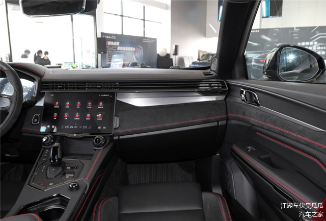 仪表盘采用12.3英寸的尺寸,可以显示各种各样的车辆信息,在使用不同的驾驶模式的时候,它会切换不同的色彩主题。全系标配12.7英寸的中控大屏,UI的界面设计非常的简约,如果设计得更个性一点会更符合这台车的调性。