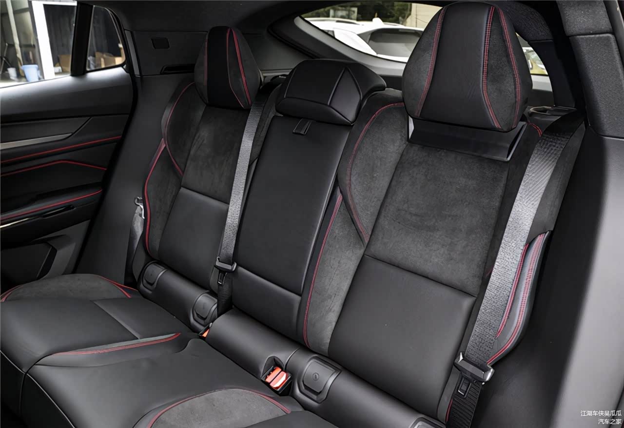 前排的一体式运动座椅在满足运动的同时也同样照顾到了舒适,尤其是腿部和肩部以及腰部两侧的支撑性都非常的到位,翻毛皮的材质和真皮拼接非常的显质感与档次。后排的座椅也是采用一体式设计。