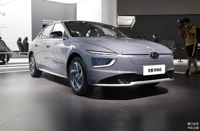 此外,与汽油版车型一同发布的还有全新名图纯电动车型,与汽油版车型不同的是该车的进气格栅是封闭式设计,想必是以此来展示自己纯电动的身份,前方的贯穿式镀铬装饰与车标融为一体,也为整车提升了质感。该车车身尺寸为4780*1815*1460mm,轴距依旧为2770mm,相比现款车型空间方面有所提升。