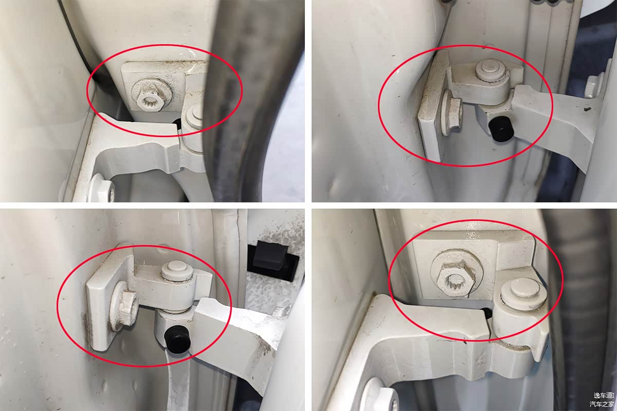 检查四个车门的固定螺丝均有拧动调整的痕迹,不过这个之前已经给大家解释原因了,另外提醒大家一句,并不是所有的速腾都是这个样子哦!大家可不要以后自己出去买车以为速腾都是这样,然后把大事故给当精品车买了。