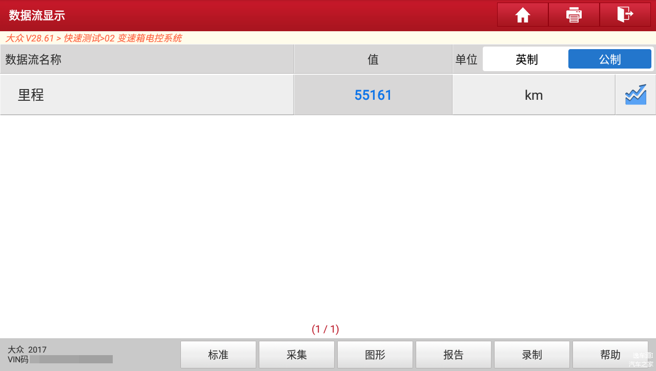 数据流读取车辆变速箱里程数为55161公里,可证明车子没有调过表。
