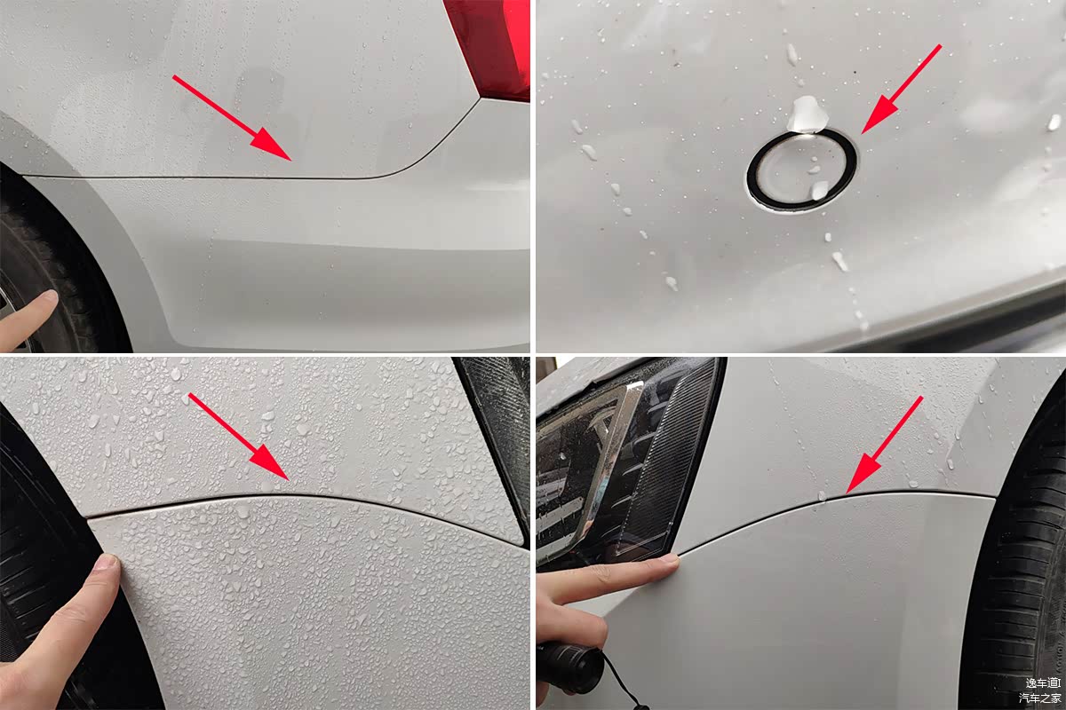 外边一直下这儿小雨,但这对我们验车来说影响并不大,绕着车子仔细看了一圈,仅是在前保险杠的位置发现些许的异常,有拆装也有补漆,其它位置到是没什么问题。