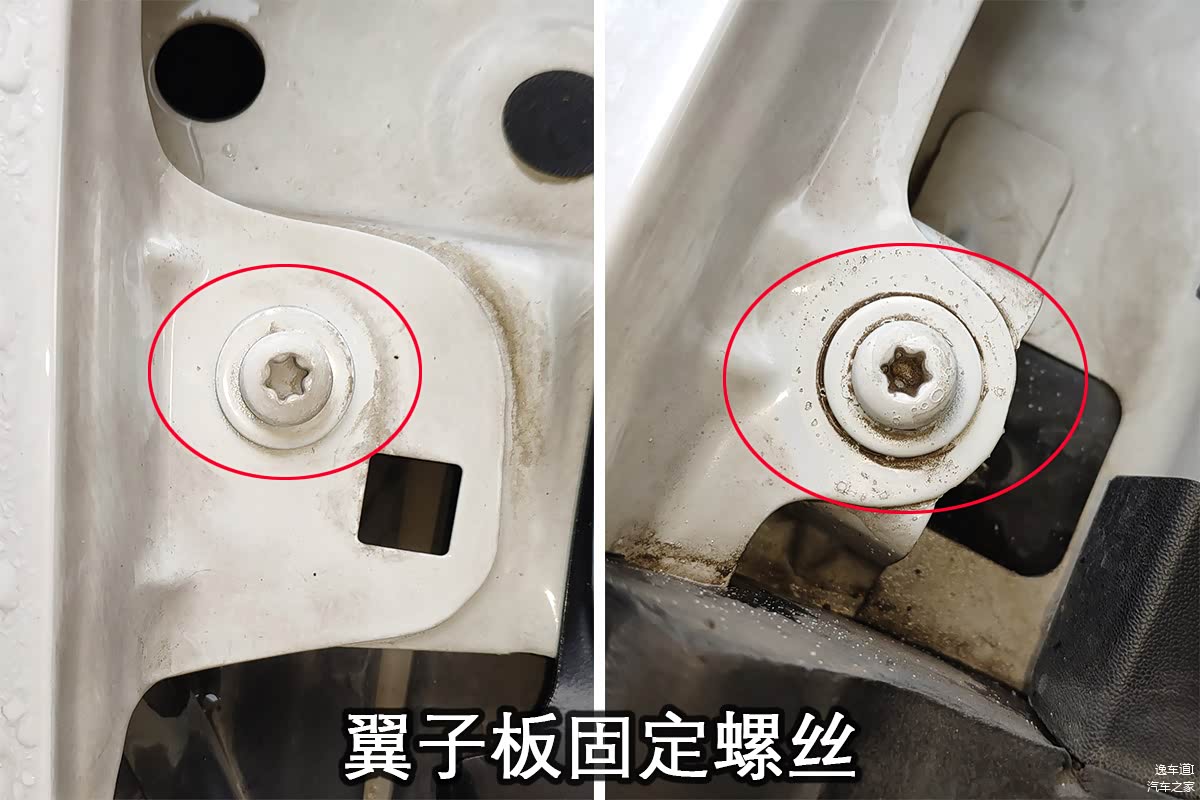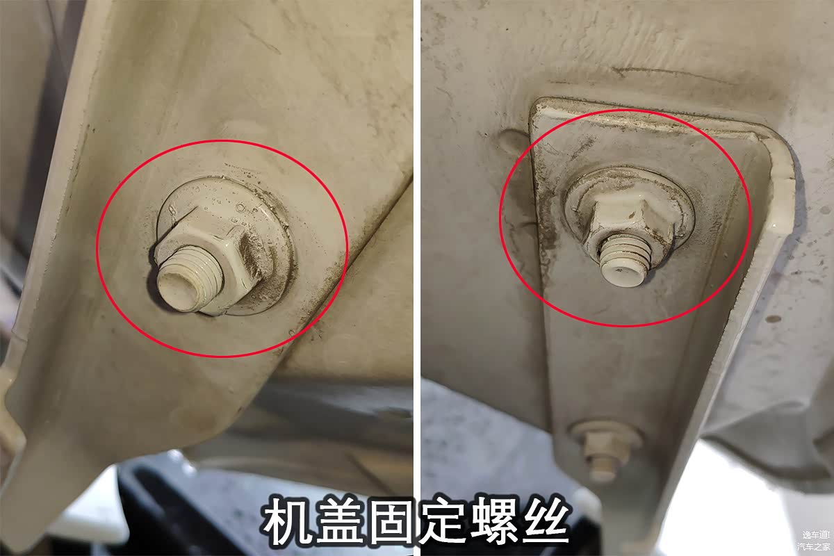先是翼子板和机盖的固定螺丝,相信百分之九十九的人看到这里都会说有问题,但真的是有问题吗?可能大家有所不知,之前速腾有那么一批车出厂就是这样,据说是原厂调整还是什么的,而且之前包子也见过几次同年的车出现类似的情况,外观件的螺丝全都动了,但车子就是没有问题。话说如果包子经验不足或者没遇到过这个情况估计也会把这台车给误杀。