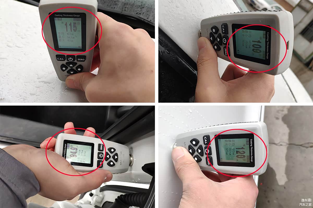 取出漆膜仪将漆面又整体的扫描了一遍,数值基本维持在110左右,那这么说这台车也就前杠不是原漆,其它都是原版,但事实真的是这样吗?身为检测师的包子向来不会草率的去下结论,所以我们继续往下看↓