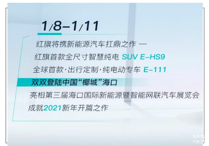 在红旗官网获悉,一款代号为E111全新纯电动轿车,2021年1月8日,在第三届海口国际新能源暨智能网联汽车展览会上,进行公开展出,同时该车将命名为E-QM5。该款新车打造推出的定位是,家用兼商公务市场,也是红旗首款出行服务定制化产品;该款全新红旗新能源E-QM5车型,还是较高端的4座型版本车型。价格没有正式公布,在有关消息获知,售价大概在20-30万元之间,预计在3月份开始量产。