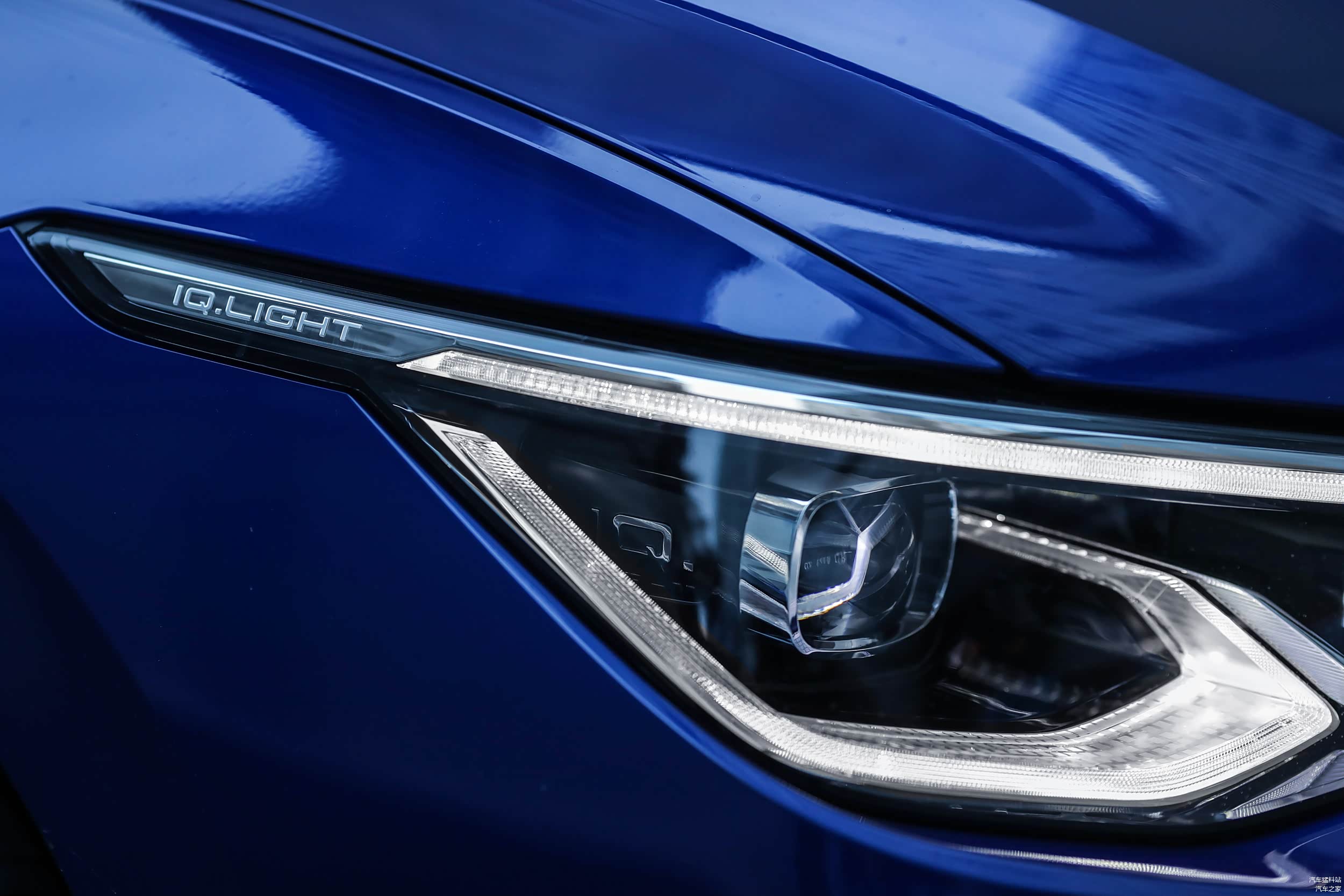 这一代高尔夫以数字为主题,许多朋友可能更着重于它的内饰,但其实在外观上,高尔夫8也有着鲜明的主题表达。前脸处,贯穿左右的细长中网显得十分锐利,隐藏在中网的灯带与与两侧的矩阵式LED大灯共同呼应了这一代的数字主题。当然,大灯组还有一个更有辨识度的名字——iQ Light智能LED大灯。
