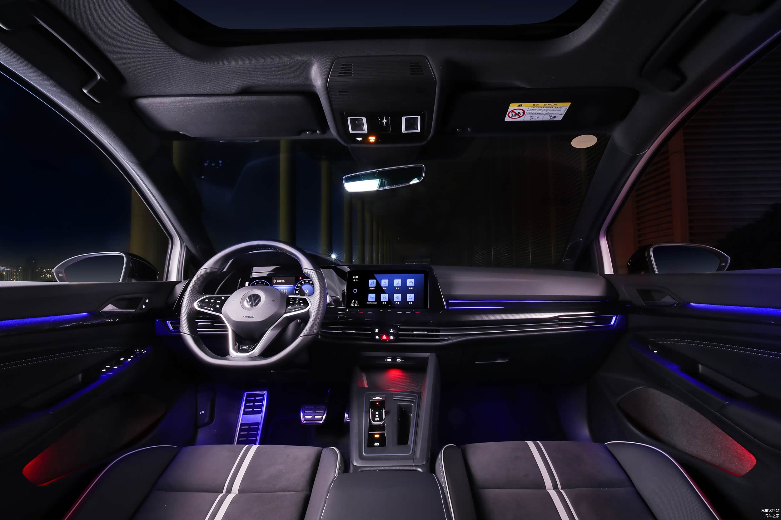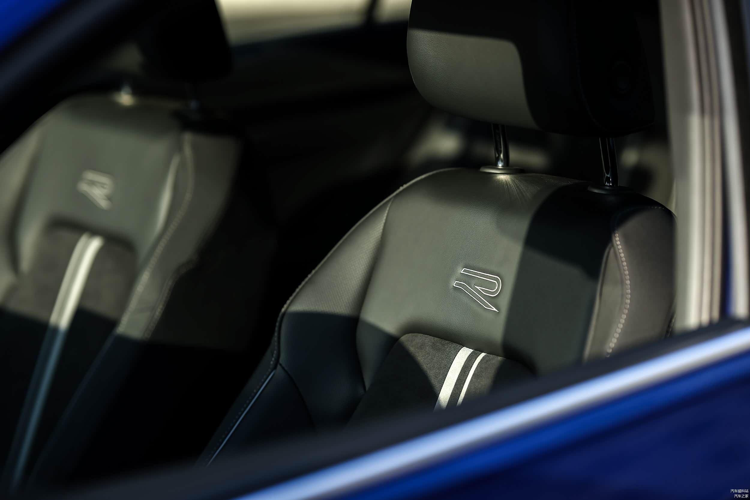 内饰方面给人焕然一新的感觉,在设计方面,贯穿式设计的出风口显得十分年轻,中控台上的皮革覆盖与碳纤维饰板的搭配,既突出高级感又强调运动感,而整车屈指可数的物理按键设计也很符合数字化下的简洁主题。当然,类双联屏的两块大屏十分抢眼,液晶仪表支持导航投射功能,中控大屏则搭载大众最新的MIB 3操作系统,支持并集成了语音控制、空调、导航、车辆设置、智能家居、网络互联等多种功能,数字座舱名副其实。而值得一提的还有座椅,包裹性和支撑性都很出色,并且上方绣有的“R”标很激发战斗欲望。