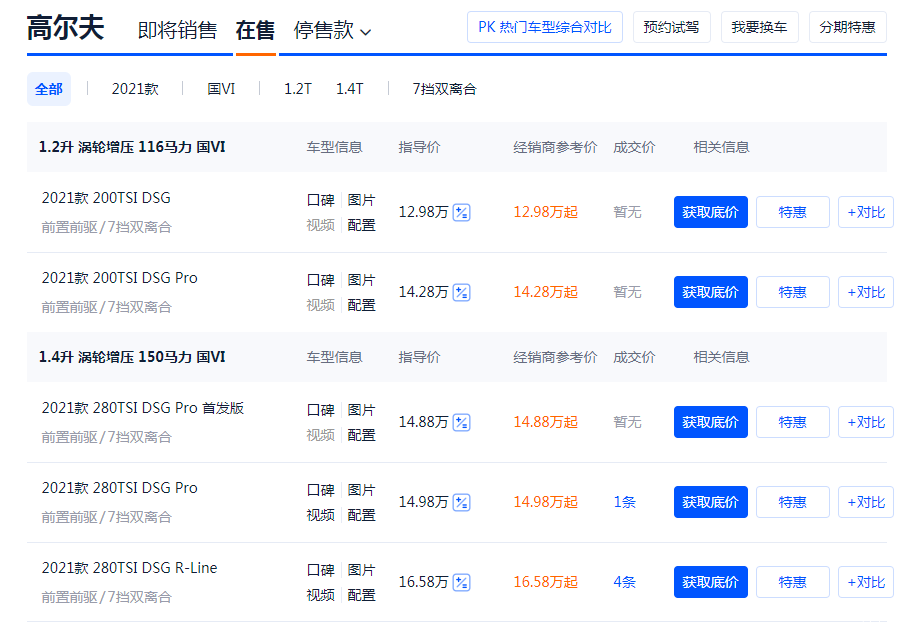 一汽-大众全新数字高尔夫的官方指导价为12.98-16.58万,共推出了5款车型,其中1.2T动力版本2款,1.4T动力版本3款。由于新车上市不久,因此目前并没有什么优惠幅度,如果以指导价入手的话,落地价参考如下: