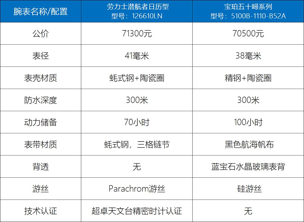 此外,劳力士的Parachrom游丝和超卓天文台精密时计认证,都是其技术方面的亮点。如果你更喜欢欣赏机芯的打磨,宝珀五十噚“天地良心珀”的素质,绝对比劳力士那冰冷的钢背壳有意思多了。