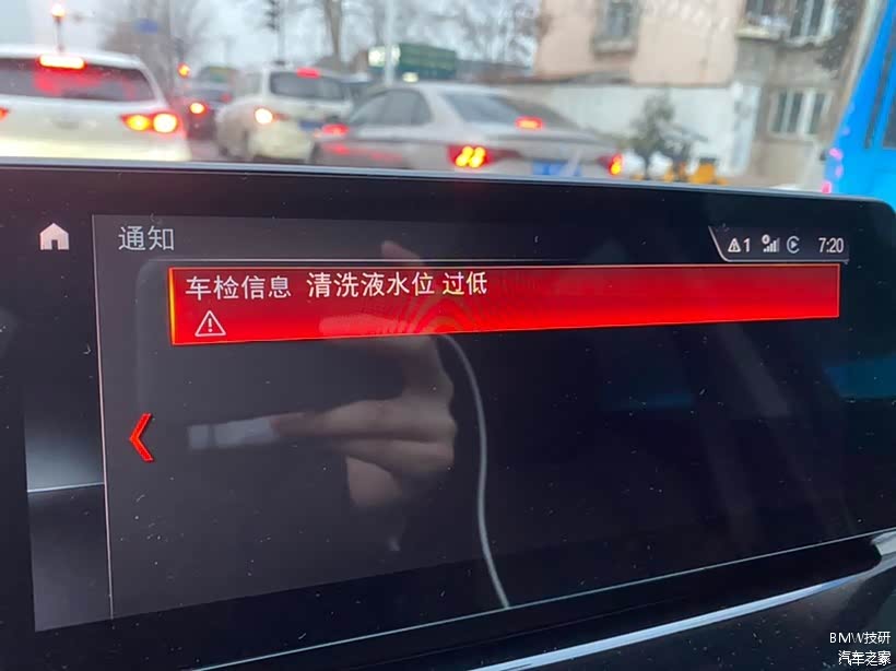仪表显示检查控制信息提示“清洗液显示已空”,“清洗液显示过低”