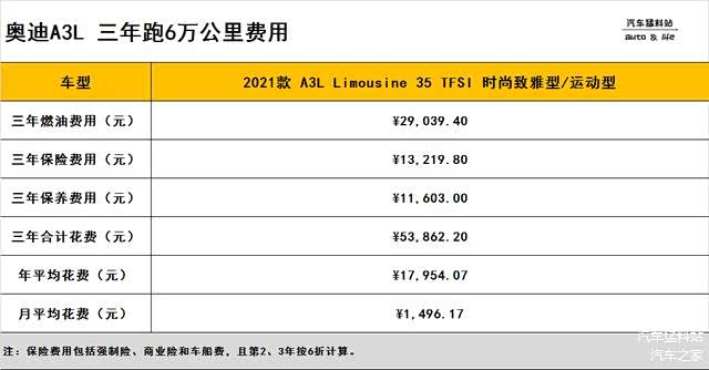 通过上述计算,我们就能得到奥迪A3L的养车成本,具体如下: