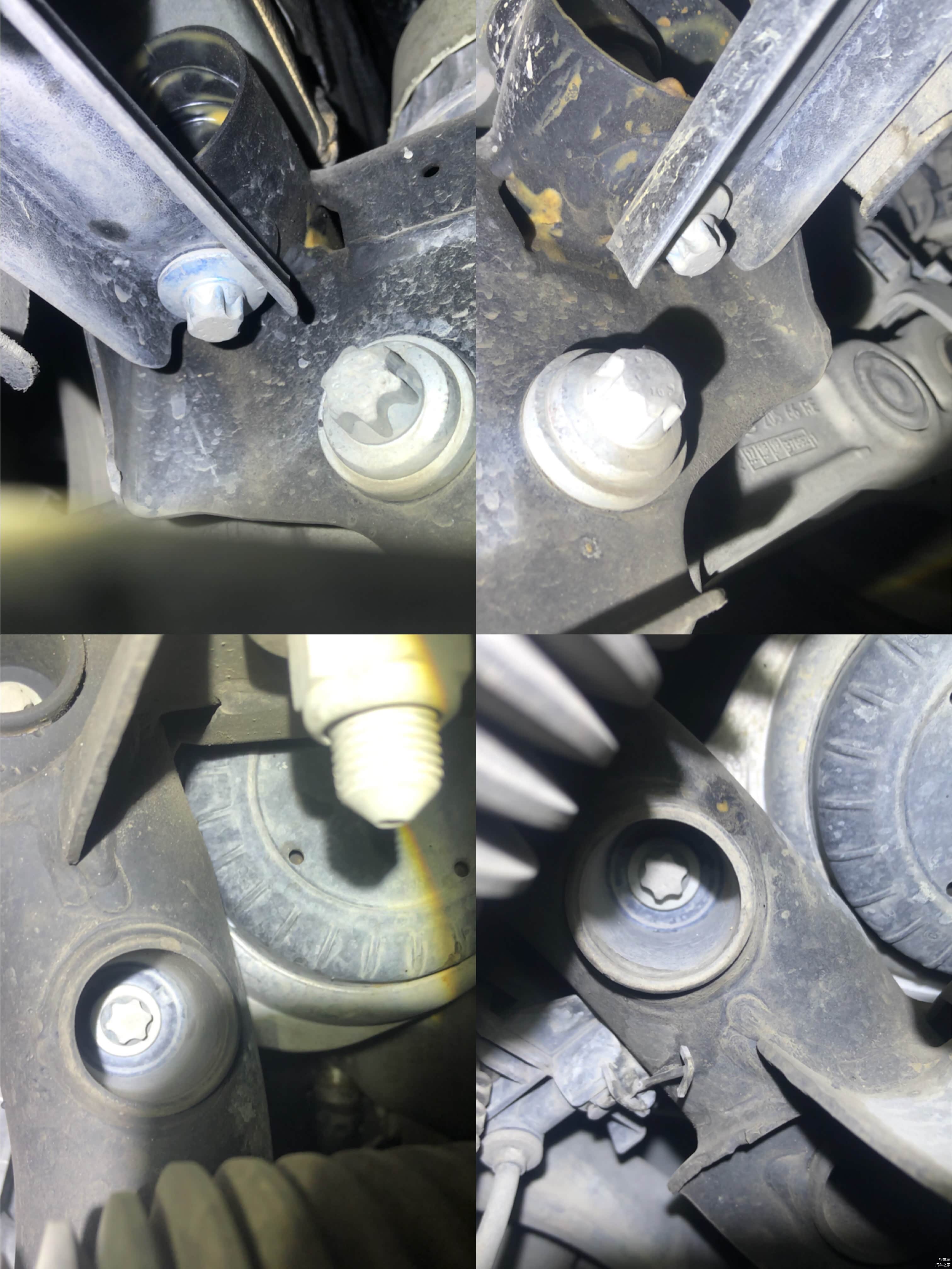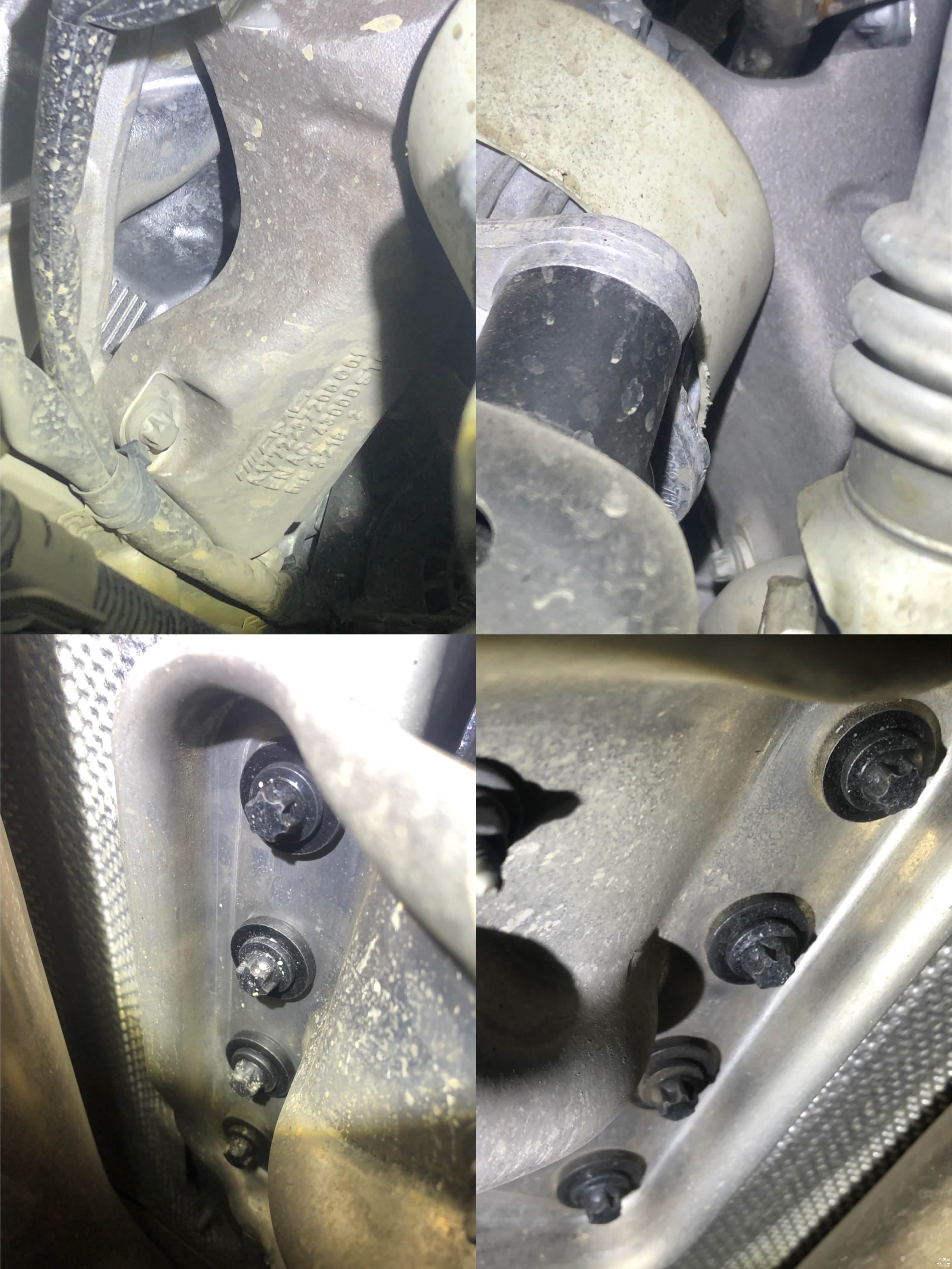 发动机和变速箱的基脚螺丝都是未曾拆卸,这下可以精确的排除该车发动机变速箱有吊装了。