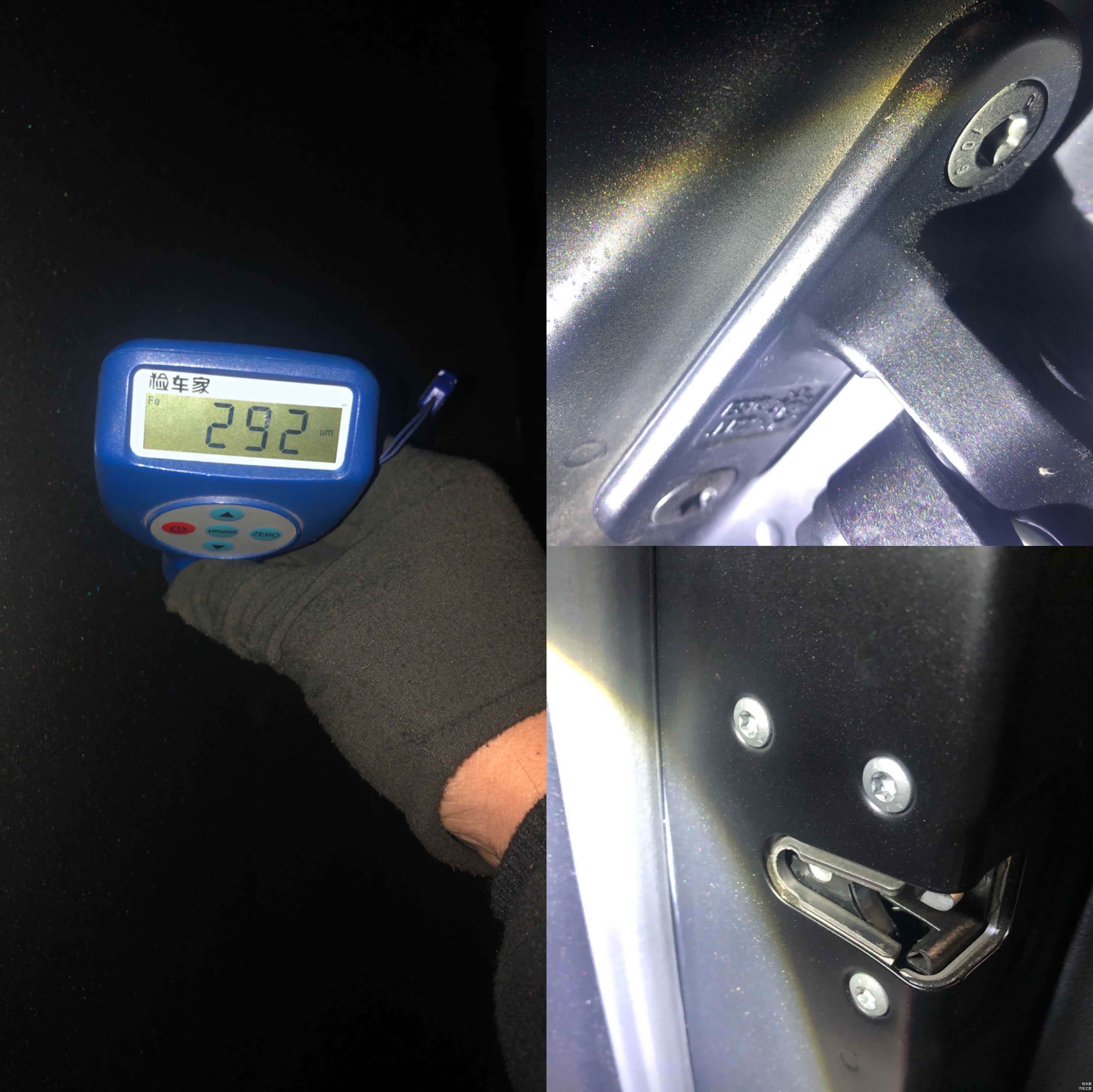 左前门漆面数值正常,铰链螺丝与锁块螺丝也未见明显拆卸痕迹,所以也是未更换。