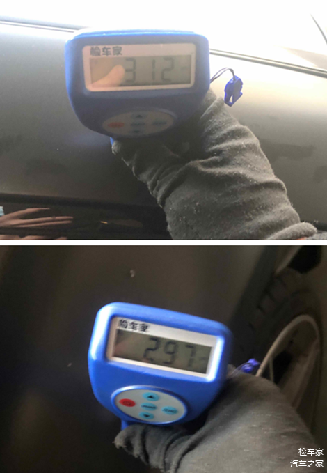左前门上边梁与下边梁漆面数值也在正常范围之内,门框内侧也未见明显的钣喷痕迹。