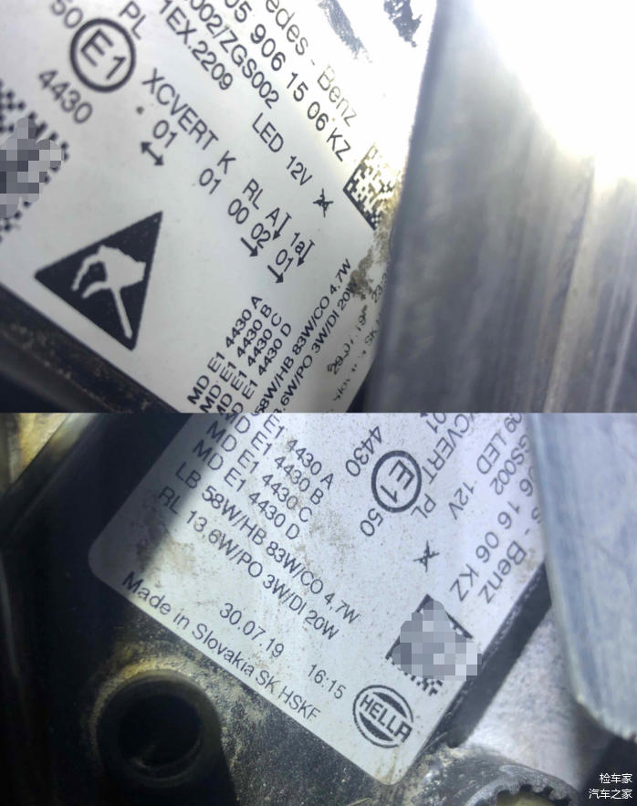大家注意看前端两只大灯的日期,这是符合该车出厂日期的,未曾更换。