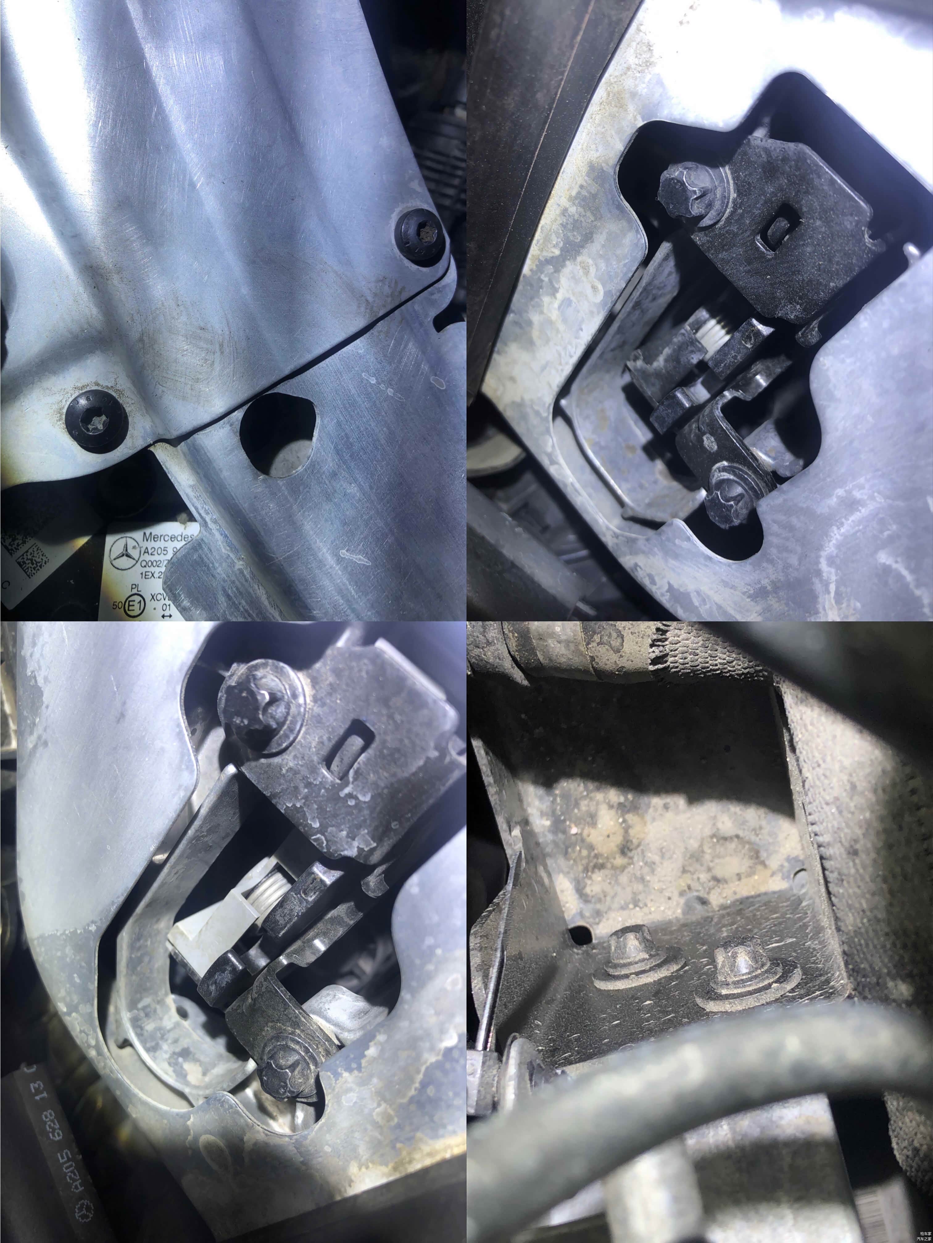 元宝梁的固定螺丝未发现有拆卸痕迹,这意味着发动机变速箱吊装的可能性就很小了,因为现在吊装发动机变速箱大概率都是把元宝梁和周围的附件拆掉,然后直接升举升机把车子升起来,这样最高效也最安全