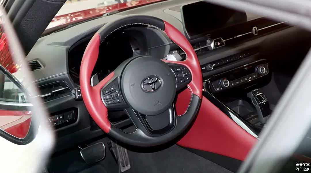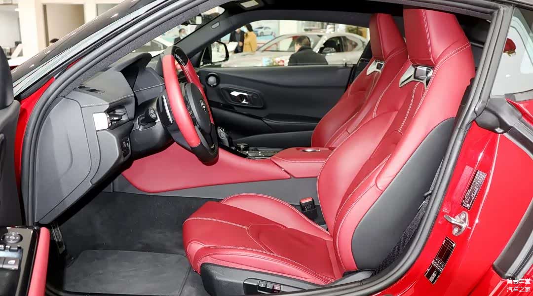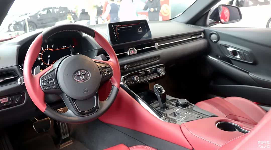 作为目前在售的丰田旗舰跑车,全新一代SUPRA在内饰的豪华感营造上也是比较用心的,中控台上方采用了大面积的软质材料覆盖;液晶仪表+8.8英寸的悬浮触控屏以及无线充电功能跟上了科技的步伐;方向盘虽然不是宝马的丁字裤,但是真皮包裹以及握把处的红色拼接至少从视觉上看更显高级。最后,全新一代SUPRA还搭载了JBL音响,尽管不是顶级的音响品牌,但是依然能带给你悦耳的视听效果。