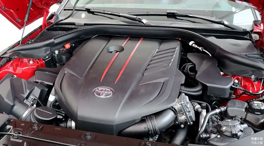 不过在跑车氛围的营造上,全新一代丰田SUPRA还是比较到位的,首先是低矮的坐姿,几乎是半躺在座椅上,并且座椅的包裹性非常不错,两边隆起的侧翼能将驾乘人员牢牢固定在座椅之上;其次,整个内饰采用红黑的经典运动配色,再配合碳纤维的面板以及垂直指针机械式加液晶的仪表盘,无不在展现其运动元素;再次,排气管尾喉迸发出的低沉声音让人迷之疯狂,毕竟在这个逐渐小排量及电动化的今天,一台6缸涡轮增压发动机确实是少有的物种。