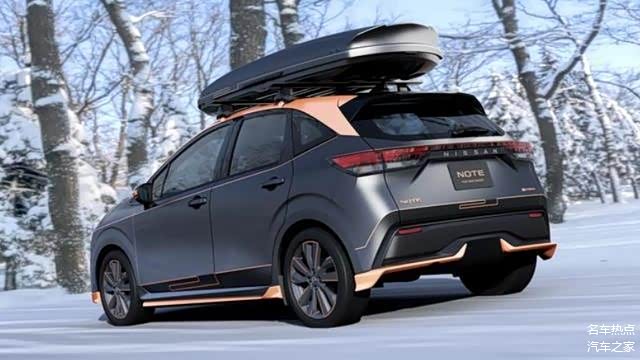 新车基于全新一代Note e-Power打造,车身加装了包括尾翼、裙板、后唇在内的运动空气动力学套件。