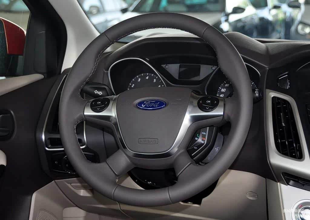 就是这台车,连车身颜色也也是一样的。2012款的福克斯1.6L自动风尚版,当年指导价14.39万。下面还是来说说为什么选择这台车吧。当然是因为便宜……不!我还是很喜欢这台车的。当年的福克斯在合资A级车中还是非常能打的,看来三缸机影响了今天福克斯的不少销量。从外观来看,这台车的造型非常运动,整个车身线条从前脸开始向后延伸,前脸的冲击力很强。不过当年的这台福克斯还使用了卤素大灯。