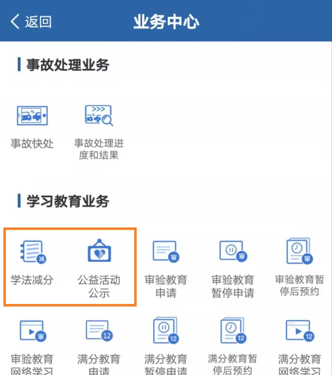 ②翻到下面找到“学习教育”业务里的,学法减分。