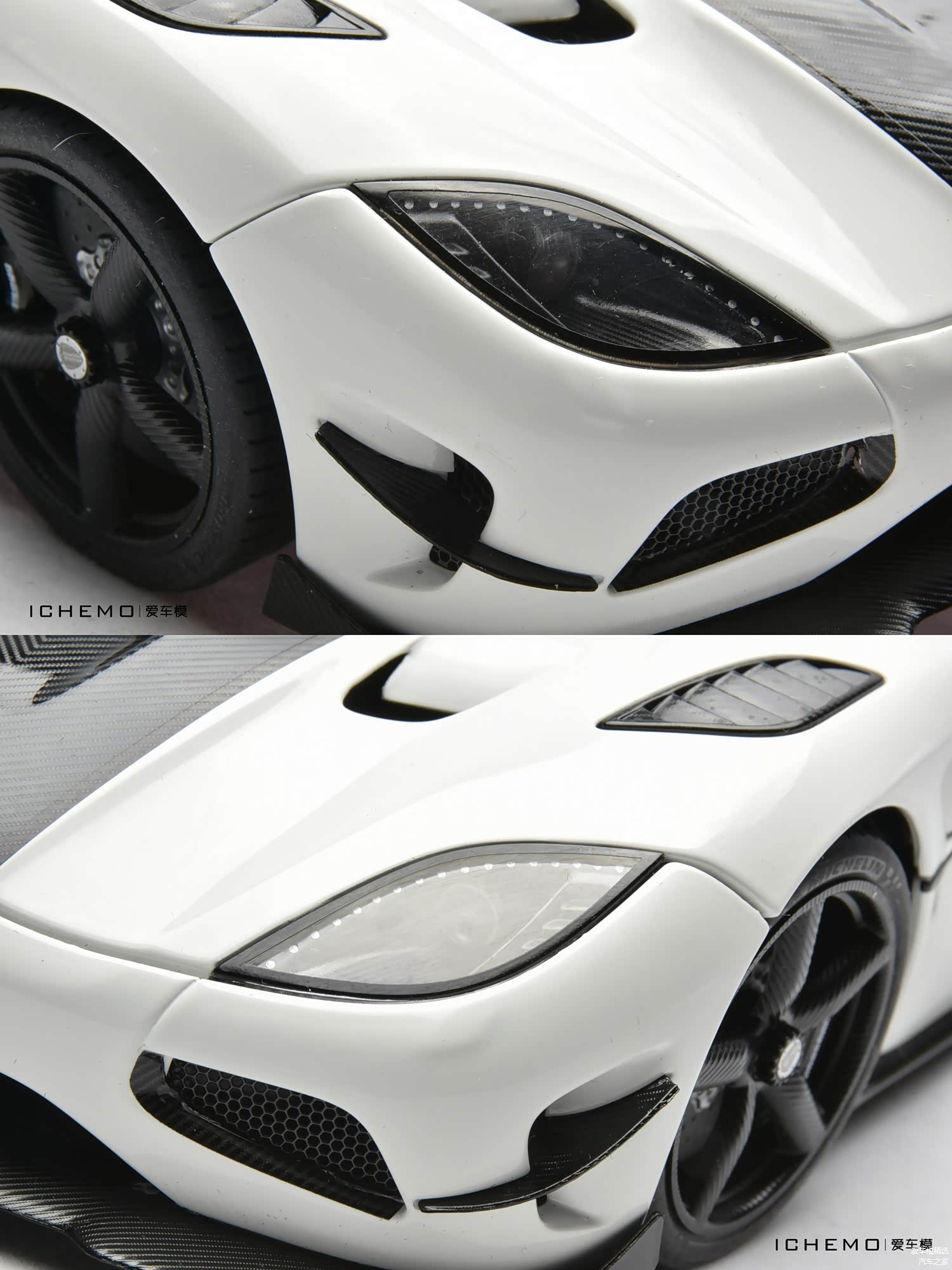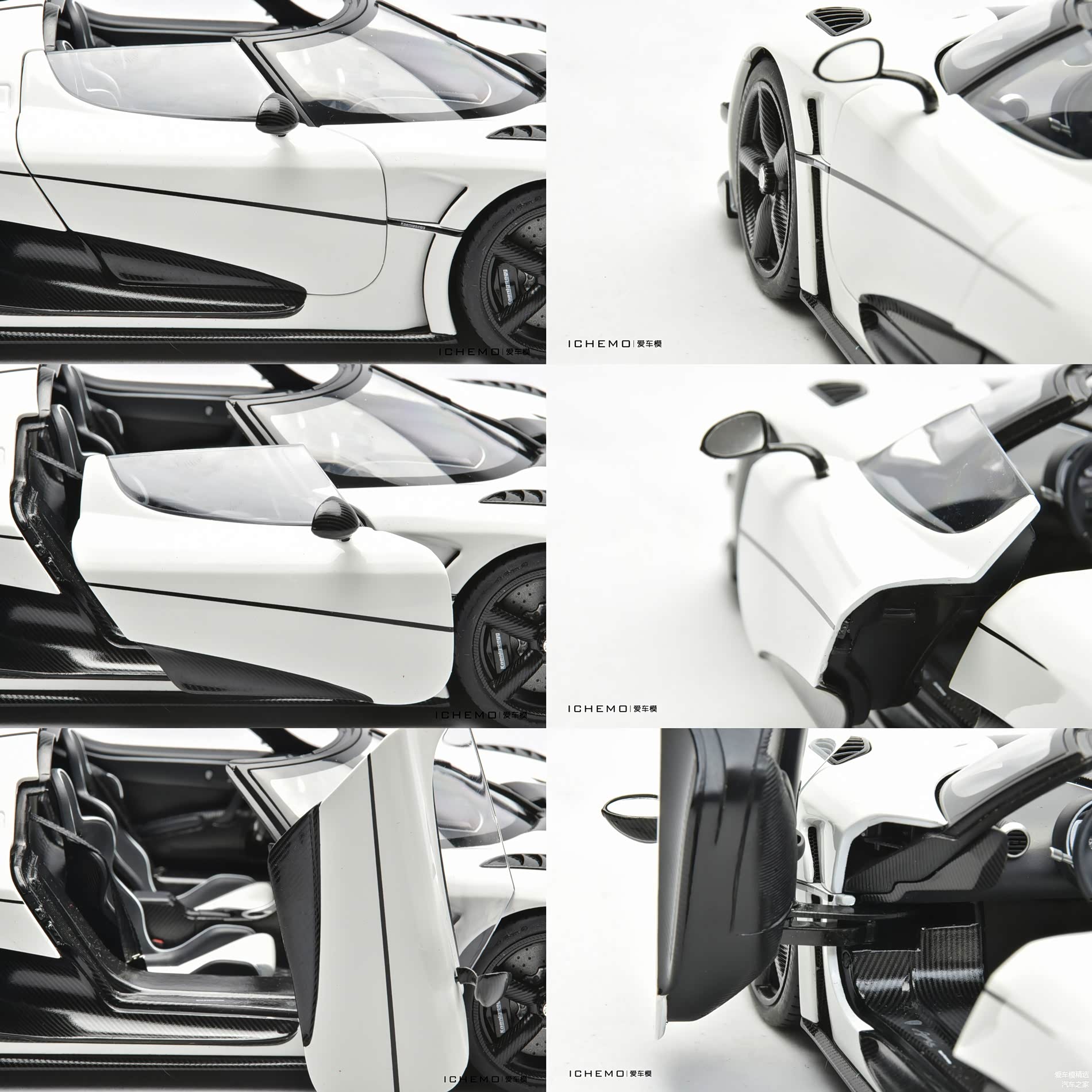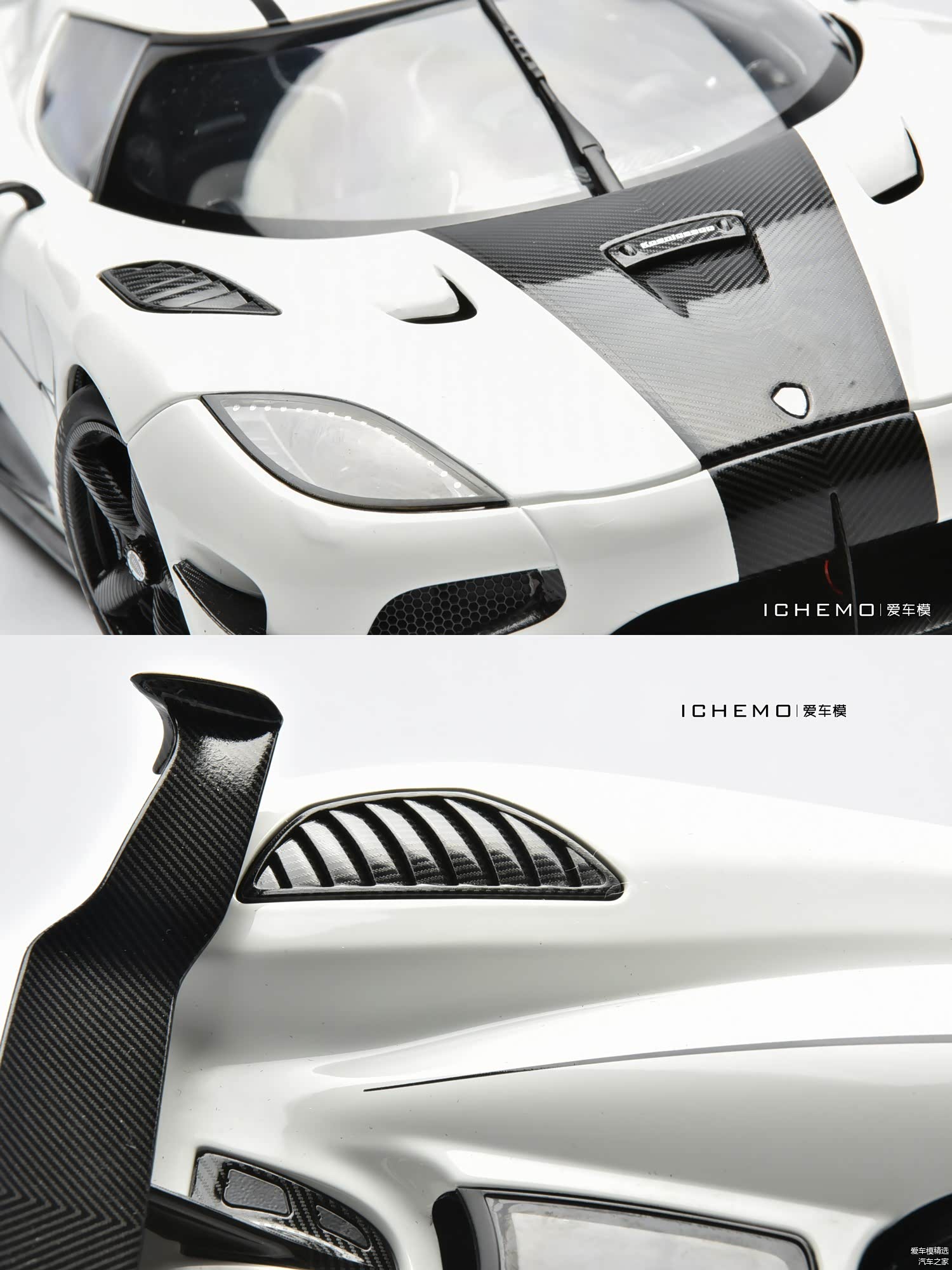 我理解,不可能所有读者都能逐字看到这里,估计有的玩家看到 “塑料” 或 AUTOart 字样便直奔评论区一通口诛笔伐。那么,我们不妨思考一下,AA 这把真用了合金又能怎样呢?哦对了,Agera RS 实车的车体为预浸碳纤维/凯夫拉和超轻夹层增强材料制成。
